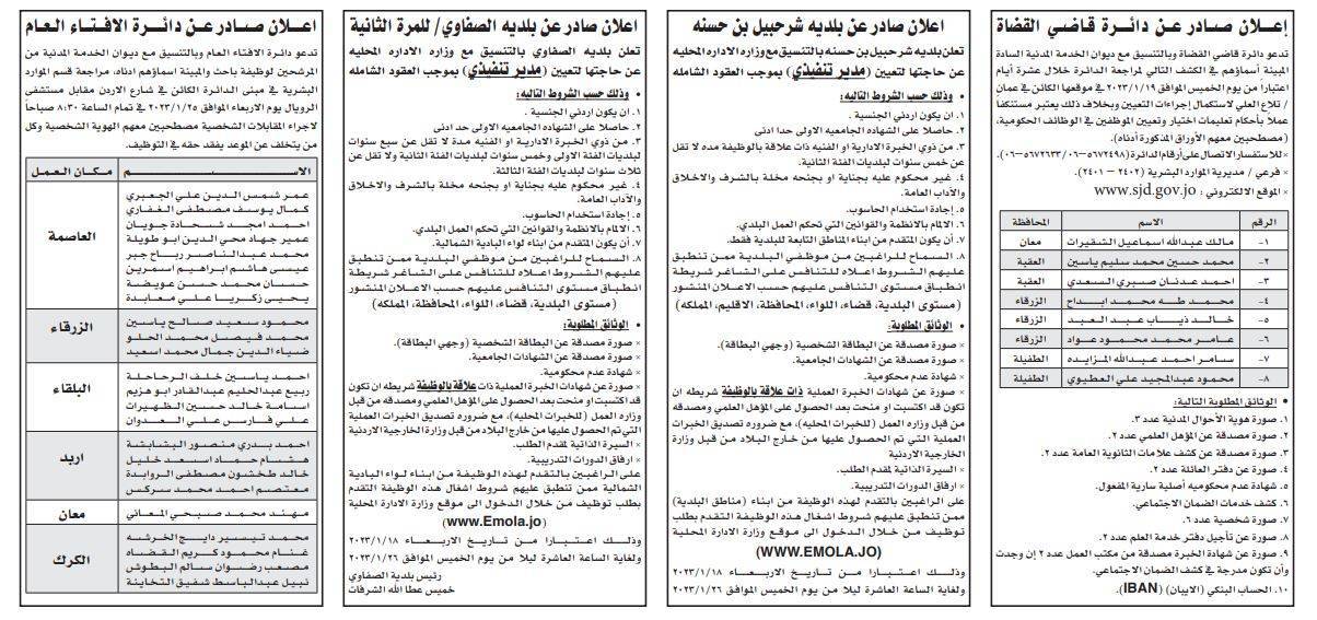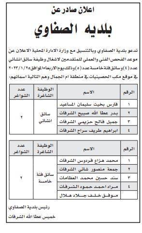 وظائف شاغرة ومدعوون للاختبار التنافسي في الحكومة - أسماء