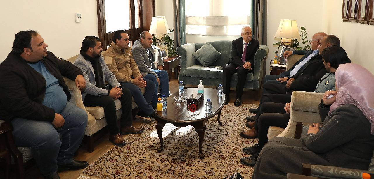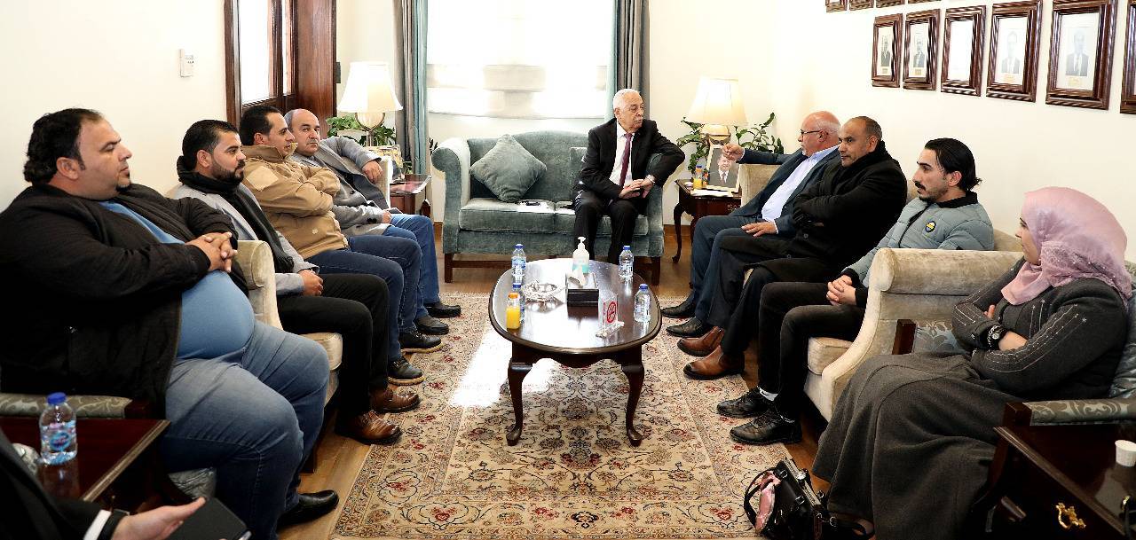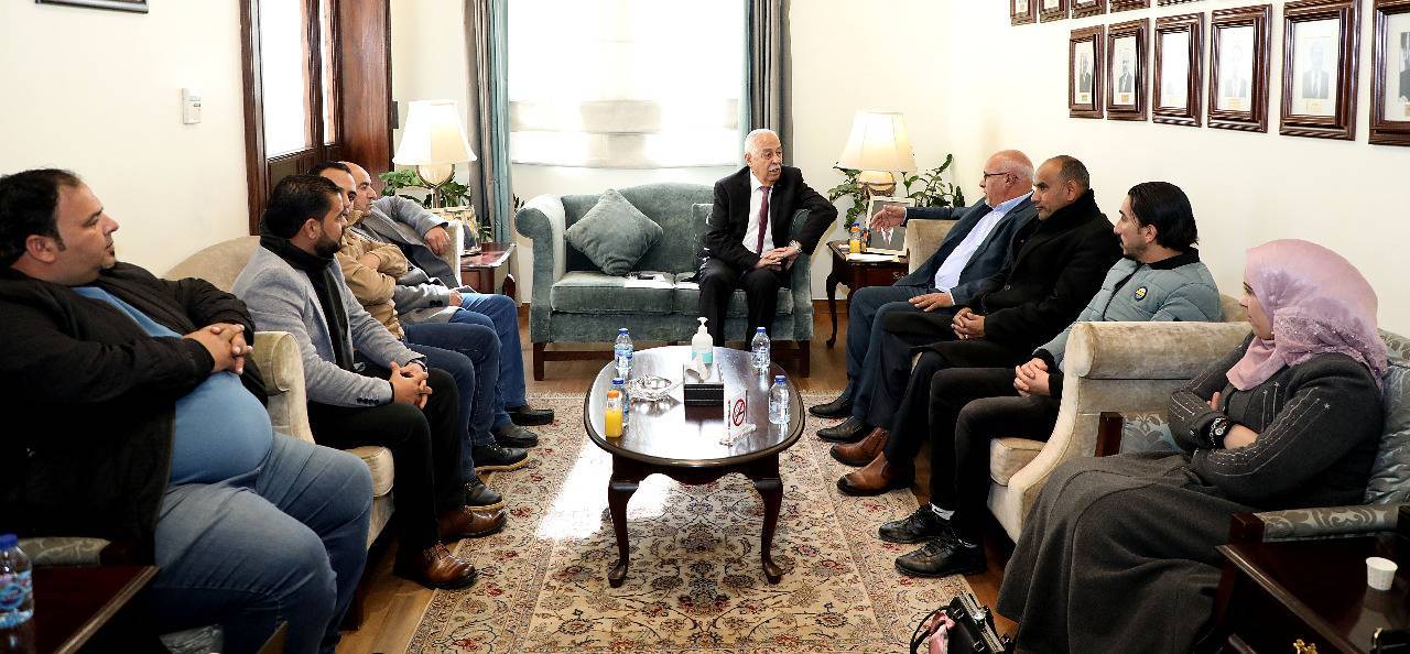 التقى رئيس الديوان الملكي الهاشمي العامر السيد يوسف حسن العيسوي في قصر بسمان الزاهر اليوم الأربعاء رئيس واعضاء بلدية القادسية بمحافظة الطفيلة برئاسة السيد علي عوض النعانعة .
