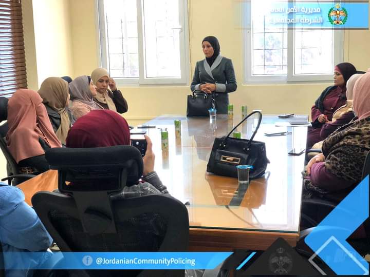 ونظمت الشرطة المجتمعية محاضرات حول التوعية البيئية والإسعافات الأولية والعنف الأسري والسلامة المرورية في مديرية صناعة وتجارة وتموين محافظة إربد، وجمعية التطوير الحضري / حنينا ، ومعهد  التدريب المهني.