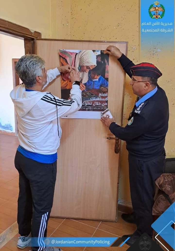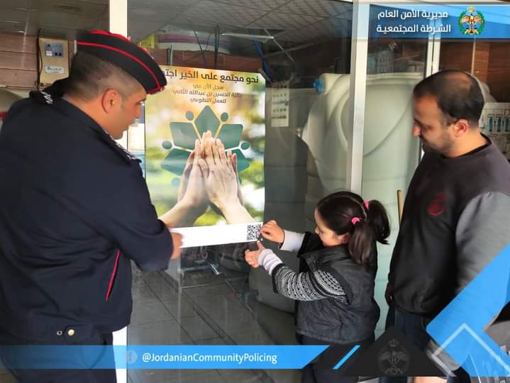 وفي سياقٍ آخر وزعت الشرطة المجتمعية ملصقات جائزة الحسين بن عبدالله للعمل التطوعي على المواطنين.