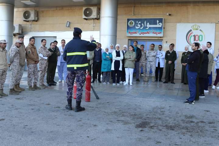 تمرين "اخلاء وهمي" بطورائ مدينة الحسين الطبية _صور