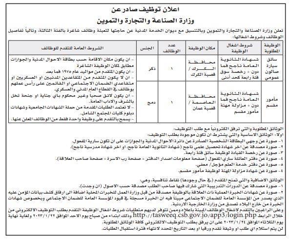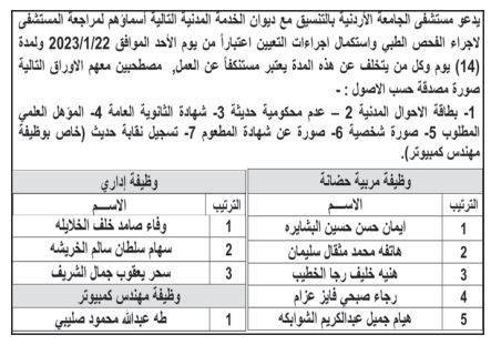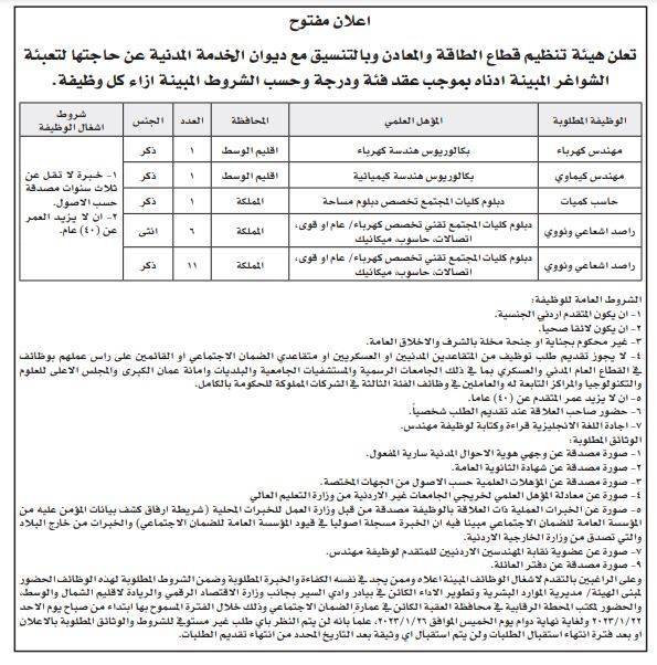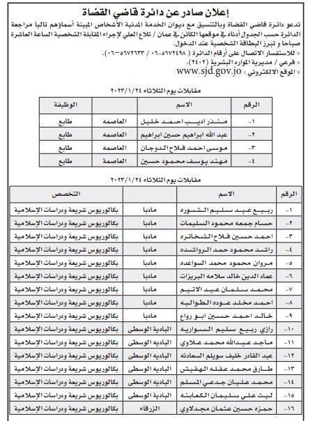 أعلنت عدد من المؤسسات الحكومية، اليوم الخميس، عدد من الوظائف الشاغرة لديها، بالتنسيق مع ديوان الخدمة المدنية.