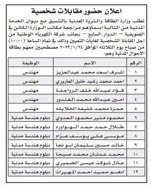 كما دعت مؤسسات أخرى آخرين، لاستكمال إجراءات تعيينهم.