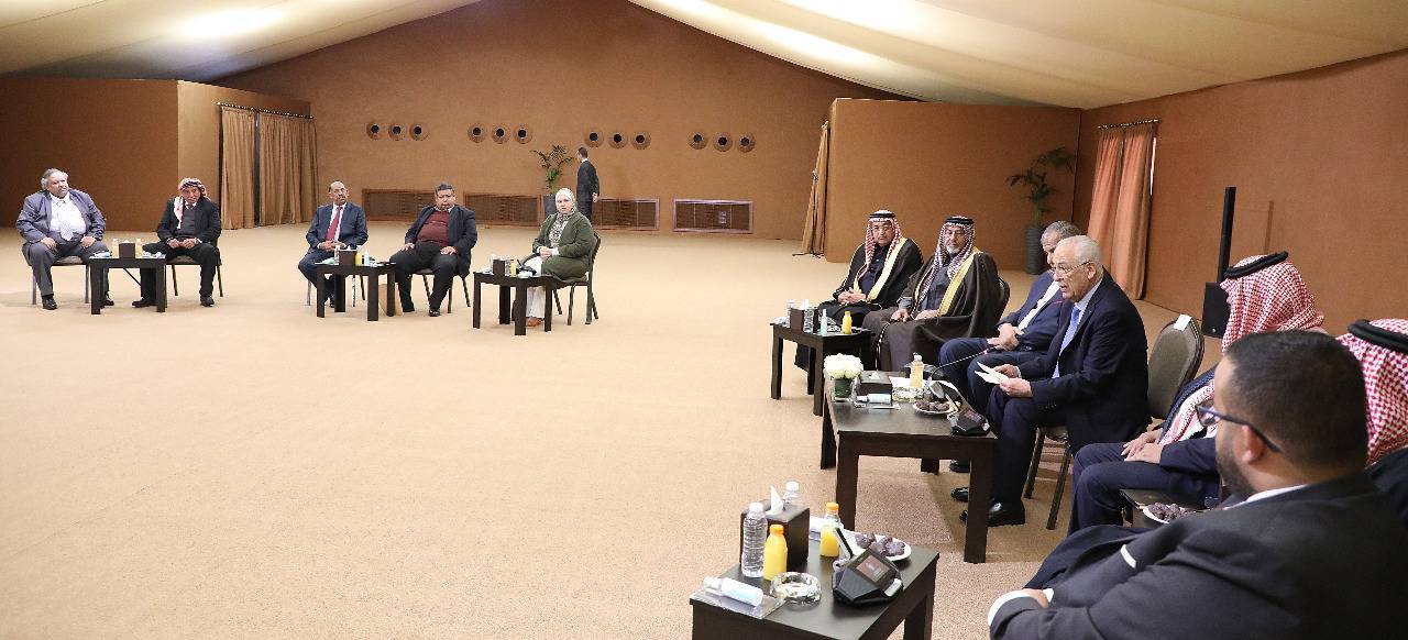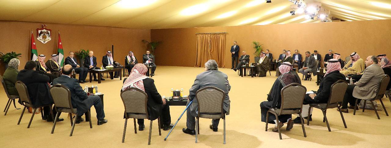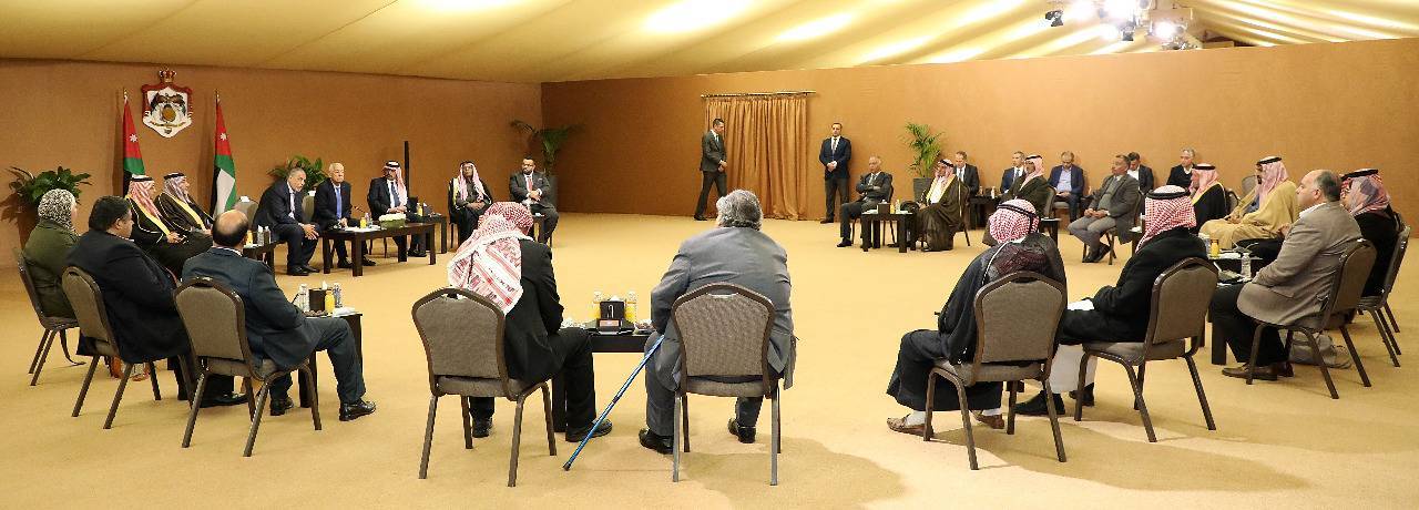 استكمالا للقاء جلالة الملك عبدالله الثاني مع وجهاء وممثلي لواء البترا، الأحد الماضي، التقى رئيس الديوان الملكي الهاشمي، يوسف حسن العيسوي، رئيس لجنة متابعة تنفيذ مبادرات جلالة الملك، اليوم الخميس، في الديوان الملكي الهاشمي، عددًا من وجهاء وممثلين عن أبناء وبنات اللواء، للوقوف على مطالبهم ومقترحاتهم واحتياجاتهم.