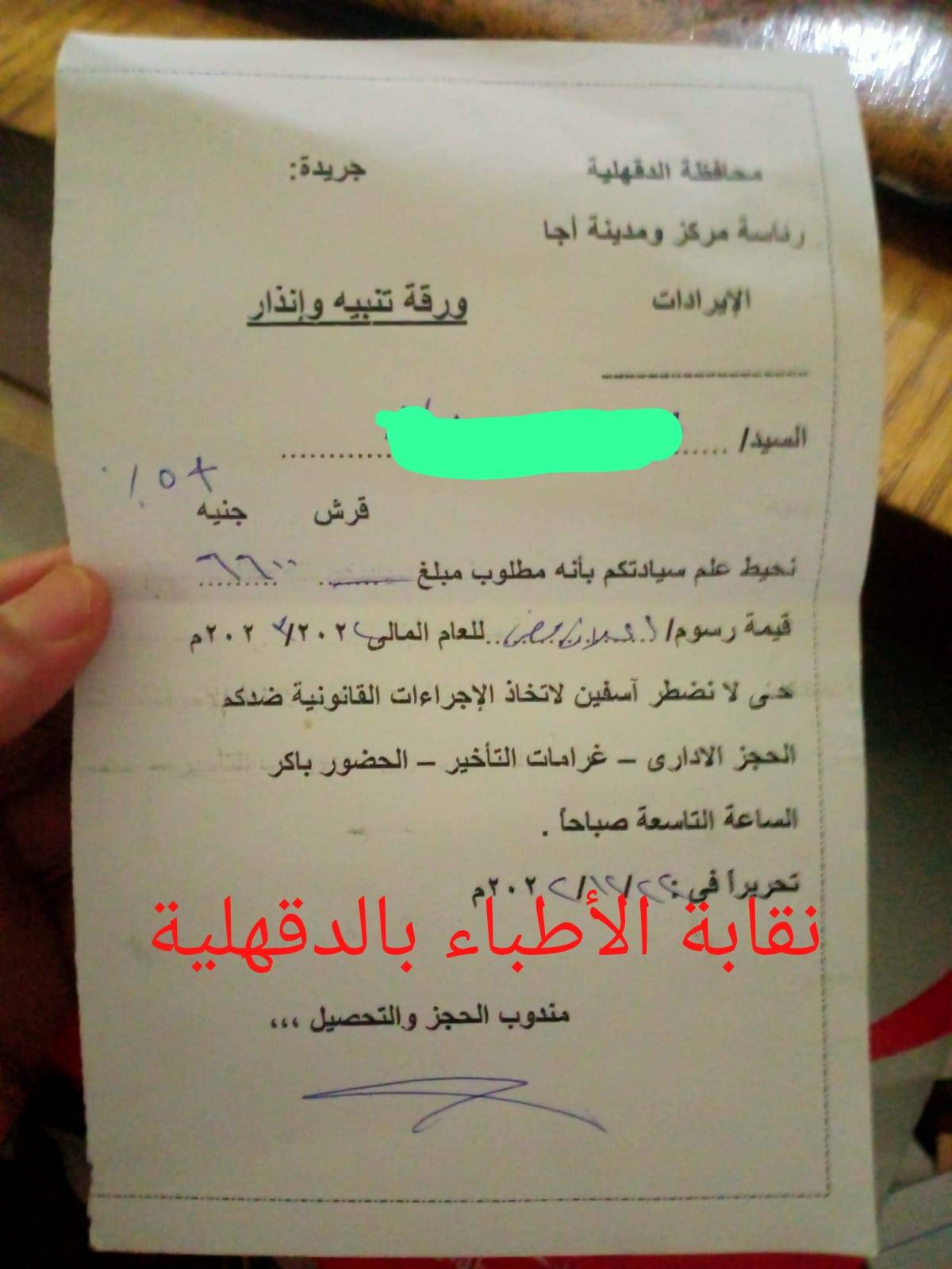 علما بأن نقابة الأطباء بالدقهلية قد بدأت فى إتخاذ الإجراءات القانونية اللازمة فى هذا الشأن بدأ من مخاطبة السيد الدكتور محافظ الدقهلية لتصحيح مسار هذا الإجراءات مرورا بالخطوات القانونية اللازمة لتطبيق صحيح القانون.