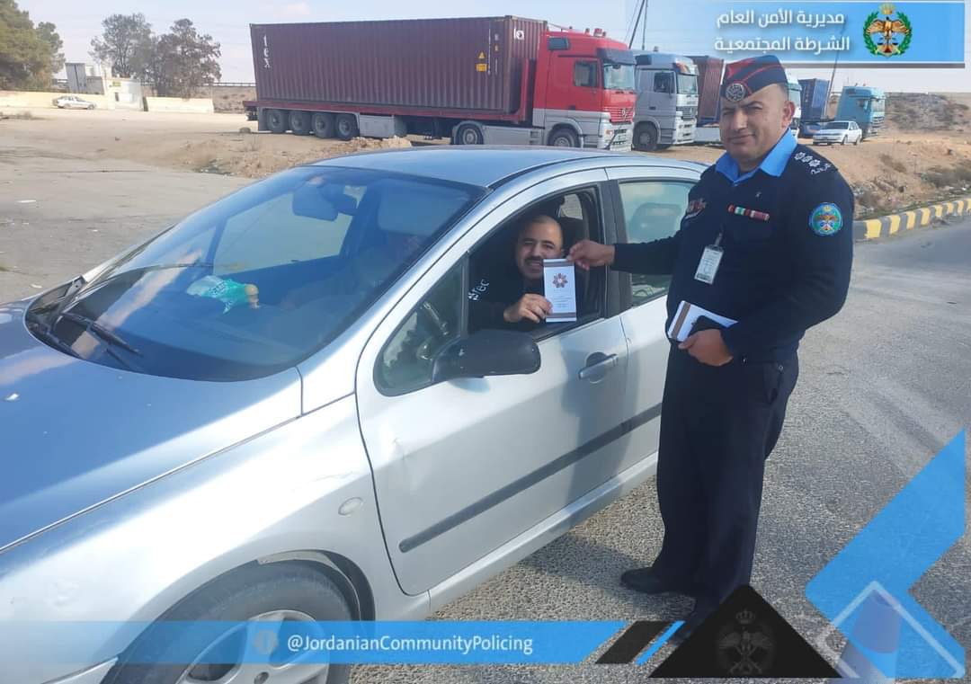شرطة البادية توزع بروشورات وملصقـات تعريفيـة بجائـزة الحسيـن بـن عبداللـة الثانـي