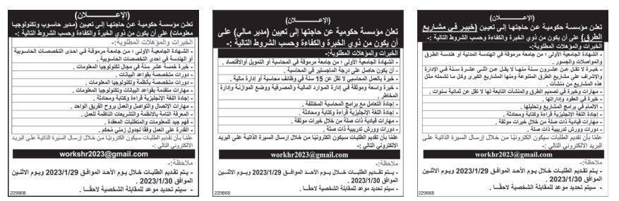 مؤسسات حكومية تعلن حاجتها لتعيين وتعبئة وظائف شاغرة