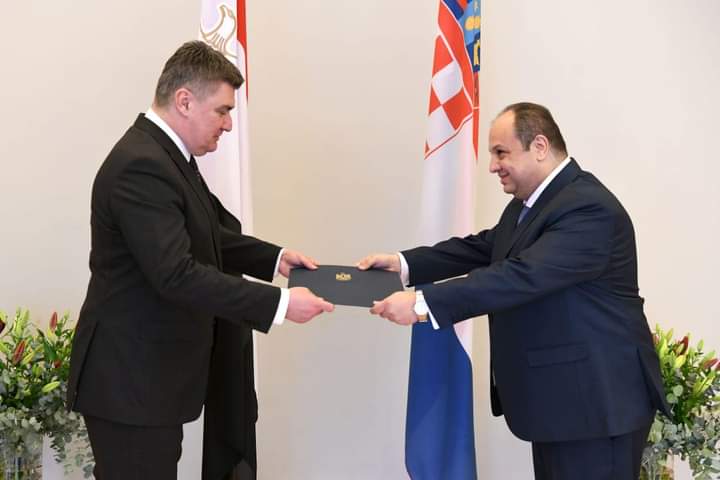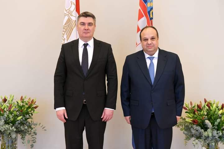 تسلم رئيس جمهورية كرواتيا "زوران ميلانوفيتش" أوراق اعتماد السفير أيمن ثروت أمين، سفير جمهورية مصر العربية لدى جمهورية كرواتيا، حيث أقيمت مراسم الاستقبال بالقصر الجمهوري في العاصمة زغرب.