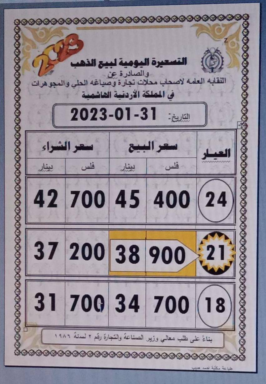 وبلغ سعر الذهب عيار 21 الأكثر طلبا من قبل الأردنيين 38.90 دينارا لجهة الشراء من المحلات و 37.20 دينارا لجهة البيع.