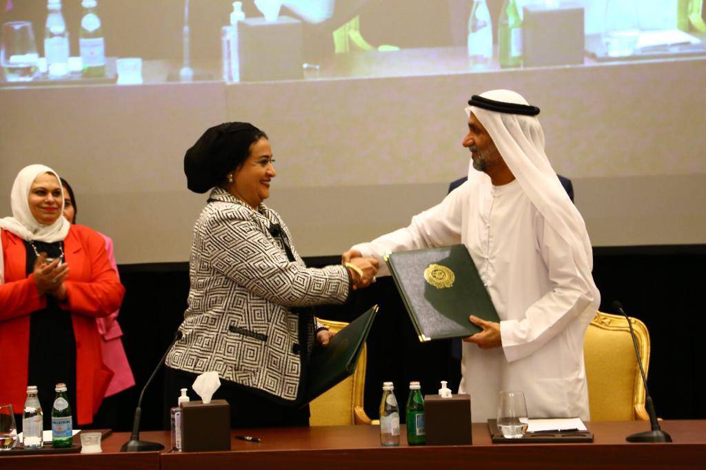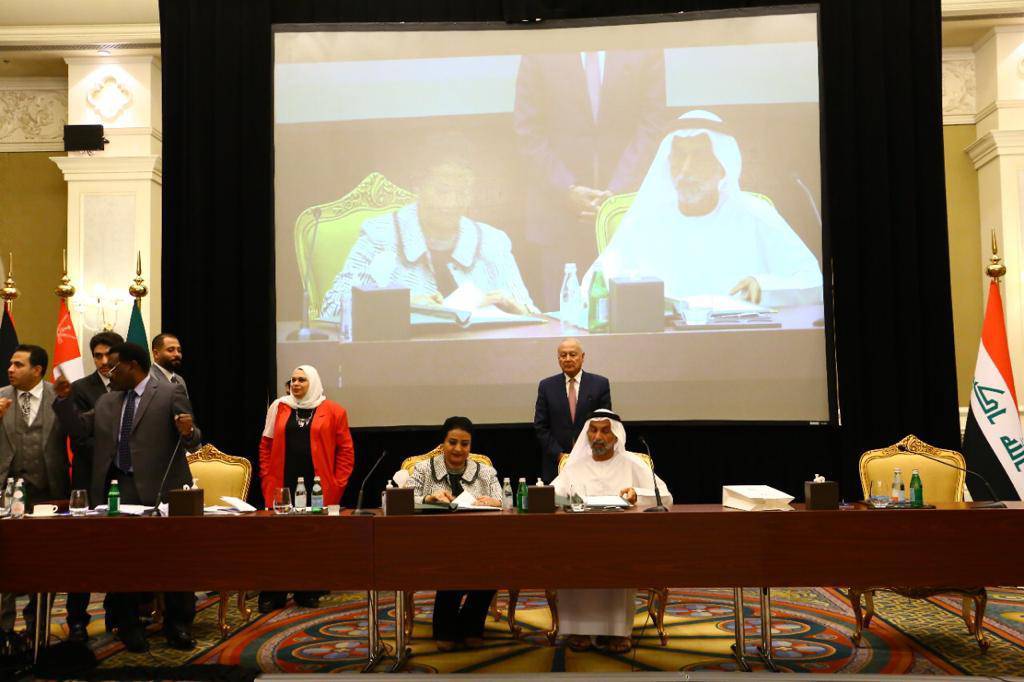 شهد الأمين العام لجامعة الدول العربية أحمد ابو الغيط مراسم توقيع بروتوكول تعاون مشترك بين رئيس مجلس التسامح والسلام العالمي احمد الجروان والدكتورة مايسة الهاشمي رئيس الاتحاد العربي للعمل الانساني والتنمية المستدامة عضو ملتقى الاتحادات بجامعة الدول العربية.