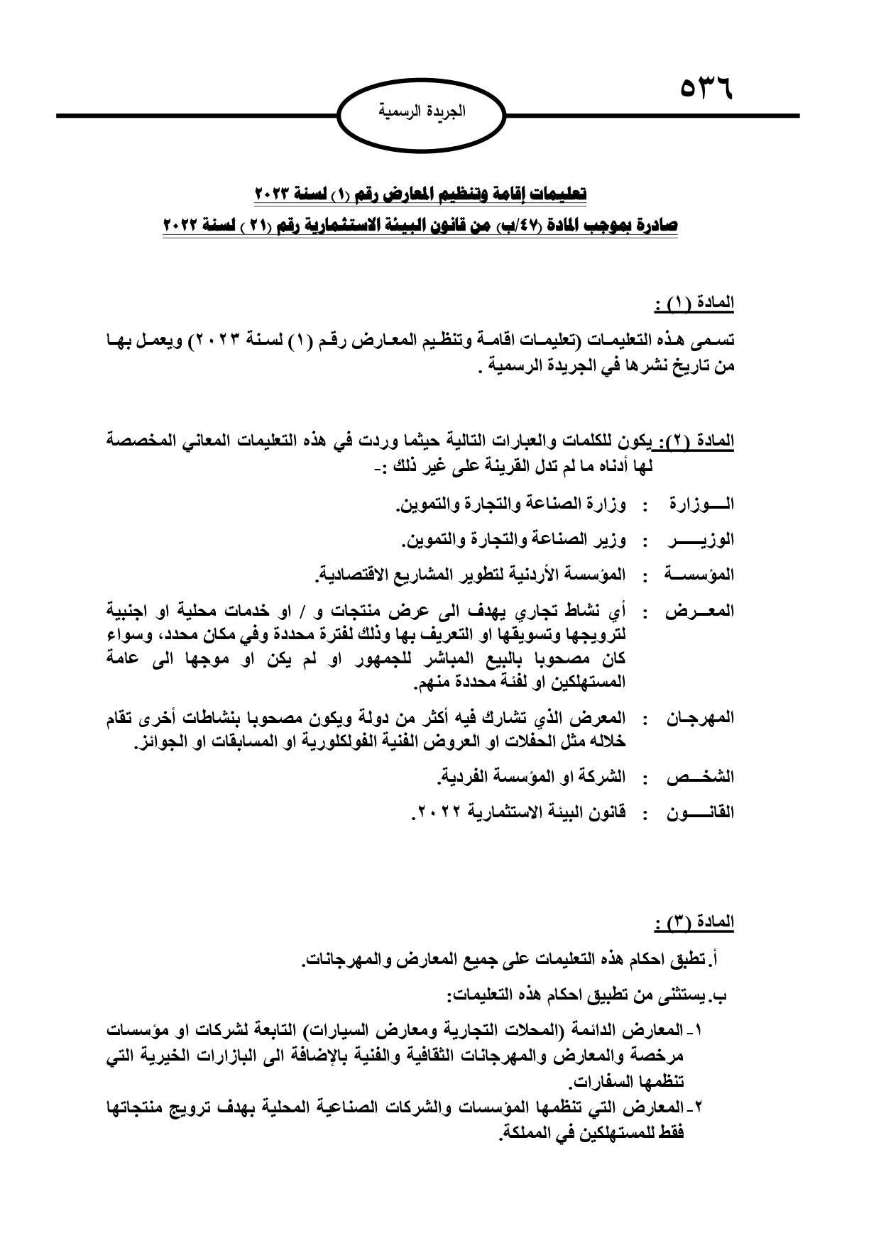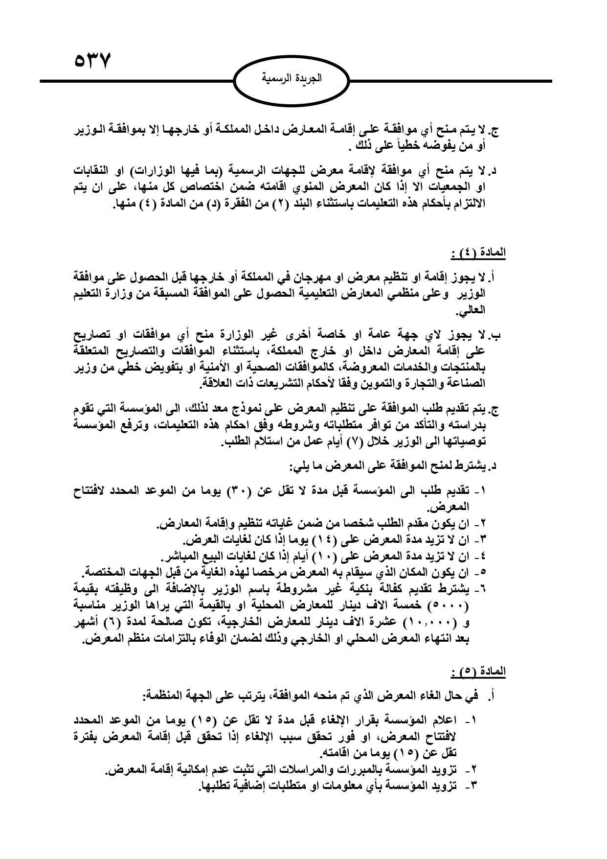 صدرت في الجريدة الرسمية اليوم الأربعاء، تعليمات جديدة لتنظيم وإقامة المعارض المحلية والدولية يتم بموجبها تحديد متطلبات إقامة هذه المعارض بشكل جديد.