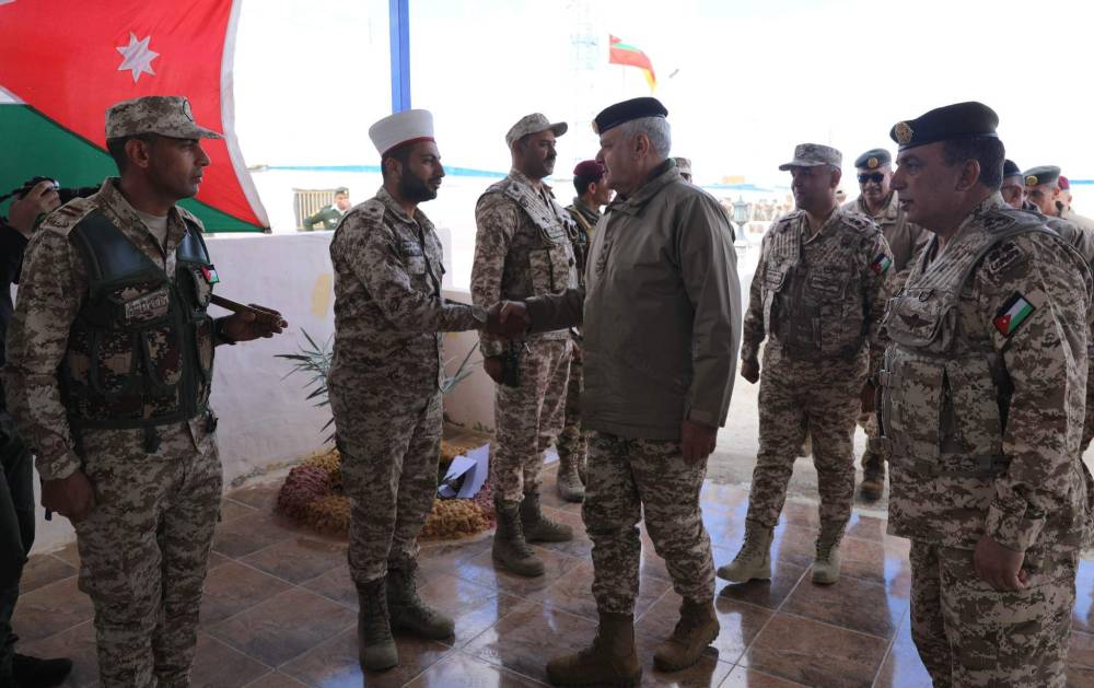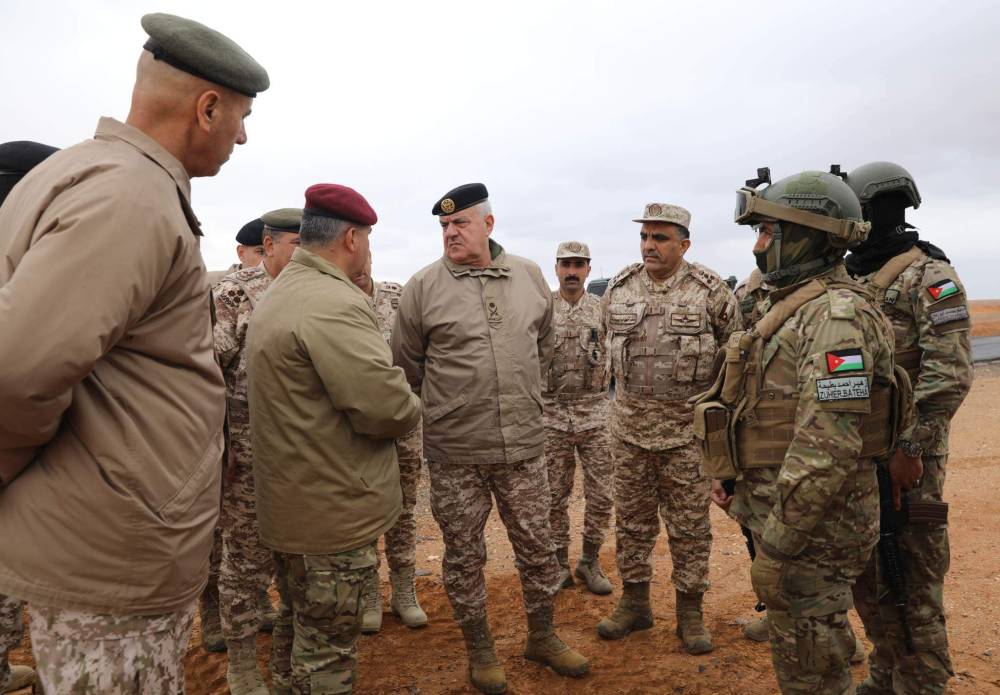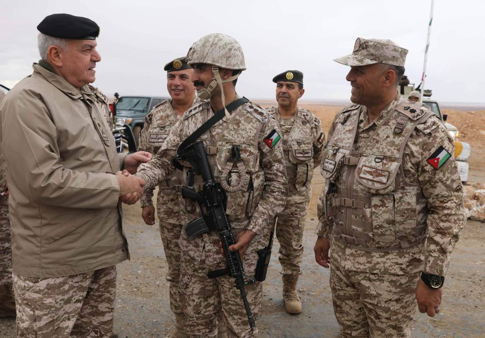 وجال رئيس هيئة الأركان المشتركة على واجهة المنطقة العسكرية الشرقية، واطلع على آلية عمل الأبراج وأجهزة المراقبة المستخدمة، معرباً عن ثقته بقدرات منتسبي وحدات حرس الحدود للوقوف بالمرصاد أمام كل من تسول له نفسه المساس بالأمن الوطني الأردني.