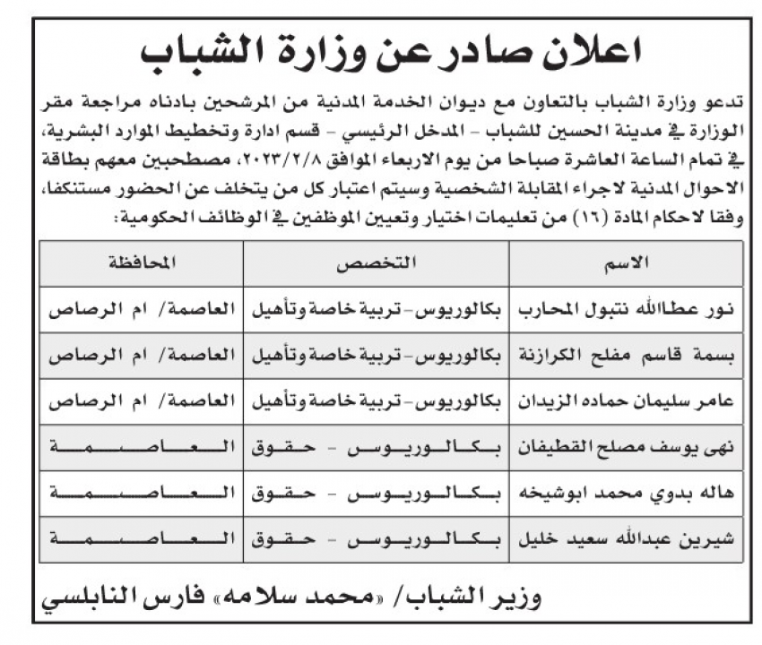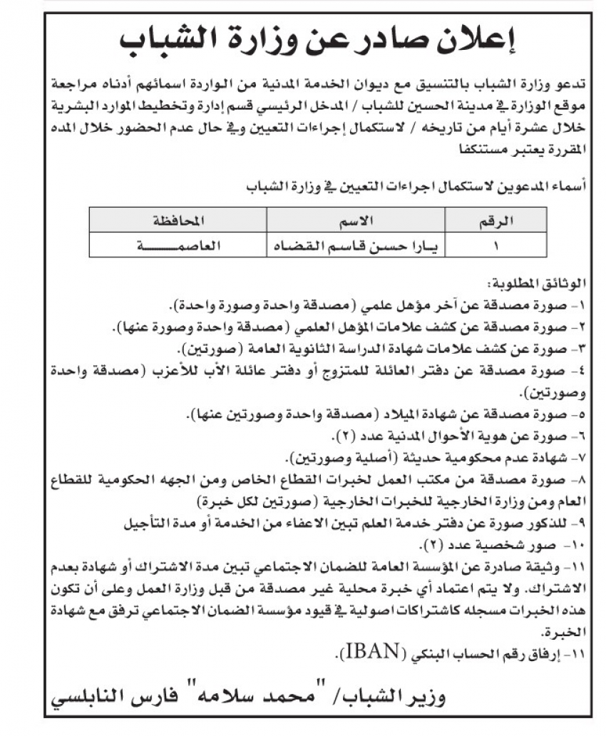 مدعوون للتعيين ووظائف حكومية شاغرة _ اسماء