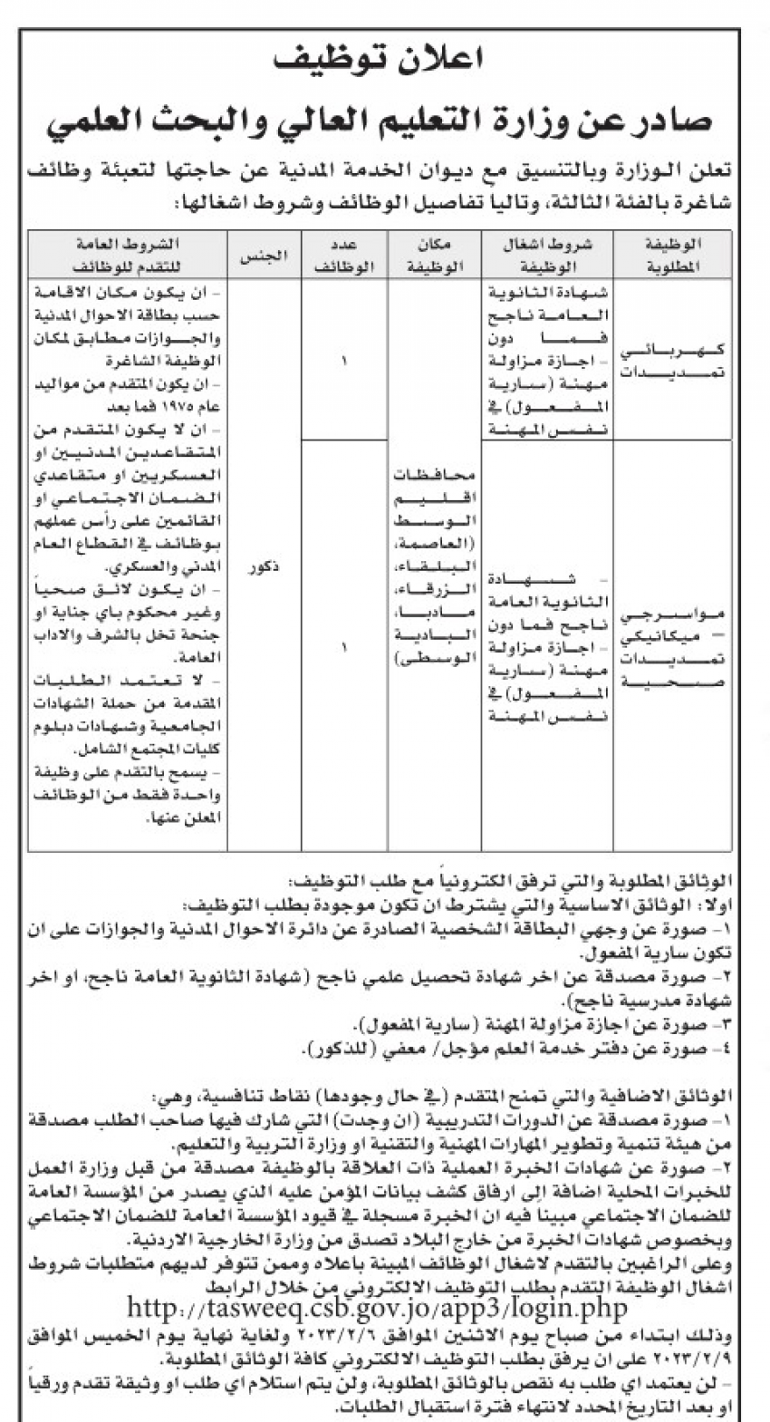 وكما أعلنت عدد من الوزارات والمؤسسات الحكومية والخاصة عن عدد من الوظائف الشاغرة .