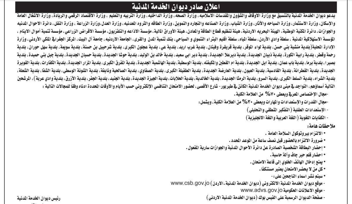 دعا ديوان الخدمة المدنية، اليوم الإثنين، عدداً من المرشحين لحضور الامتحان التنافسي.