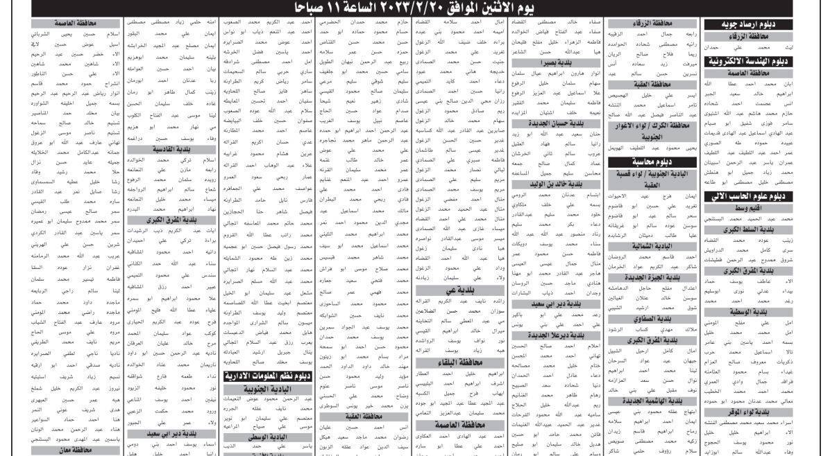 وظائف حكومية شاغرة ومدعوون للمقابلات الشخصية - أسماء