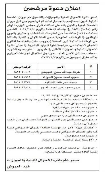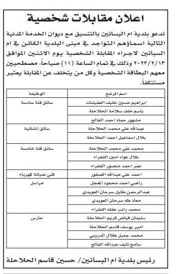 وظائف حكومية شاغرة ومدعوون للمقابلات الشخصية - أسماء