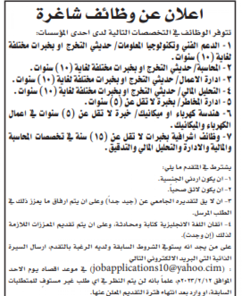 وظائف شاغرة لدى عدة مؤسسات