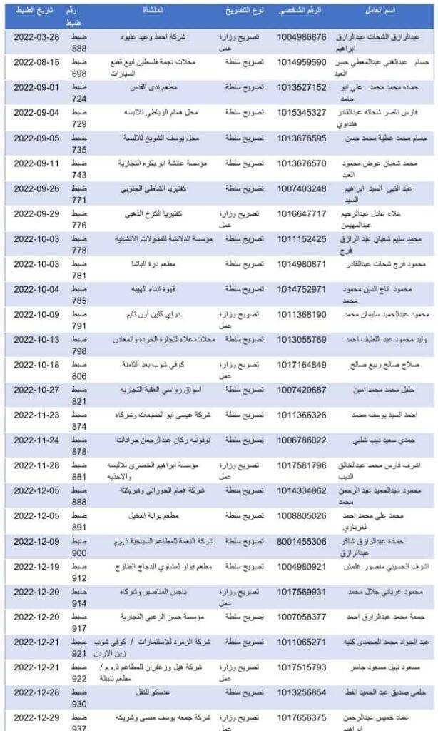 دعت مديرية الرقابة والتنفيذ/ قسم تفتيش العمل في سلطة منطقة العقبة الاقتصادية الخاصة اصحاب المنشآت الواردة في الكشف المبادرة لتصويب المخالفات المحررة بحقها خلال عام 2022 وخلال اسبوعين من تاريخه تجنباً لإتخاذ الاجراءات القانونية .