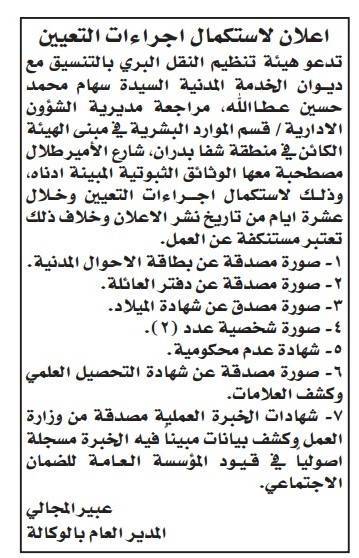 وظائف حكومية شاغرة ومدعوون للمقابلات الشخصية - أسماء