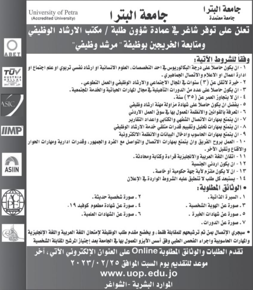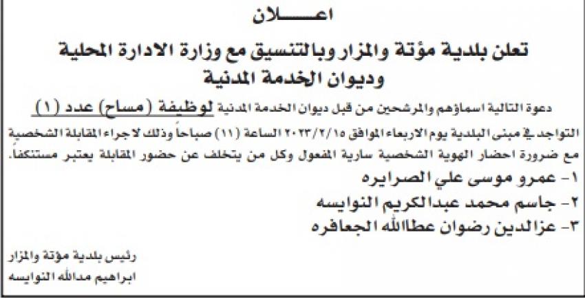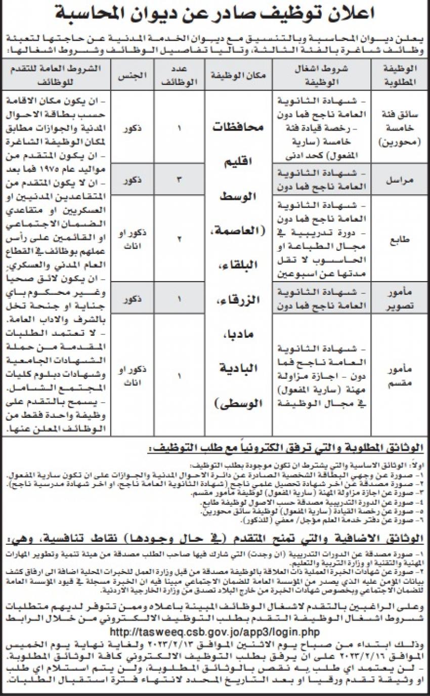 أعلن ديوان الخدمة المدنية بالتنسيق مع وزارة الصحة وديوان المحاسبة عن وظائف شاغرة اليوم الأحد والتي نشرت على الصحف اليومية .
