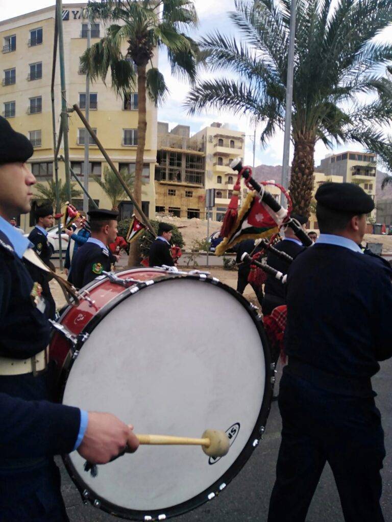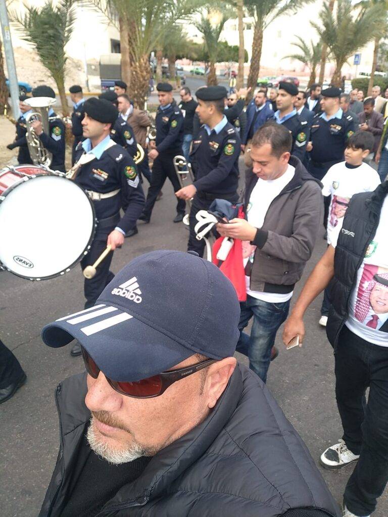 وفي المسيرة التي انطلقت في العقبة بمشاركة محافظ العقبة خالد الحجاج واعضاء مجلس مفوضي سلطة العقبة الاقتصادية الخاصة ومدراء الدوائر الرسمية والمجتمع المحلي وطلبة المدارس من امام ميدان الشريف الحسين بن على مرورا بشارع الكورنيش وصولا الى ساحة الثورة العربية الكبرى، تقدمتها فرقة موسيقات الامن العام.