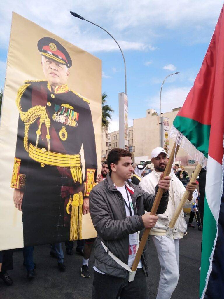 ورفع المشاركون في المسيرة صور جلالة الملك والعلم الاردني .