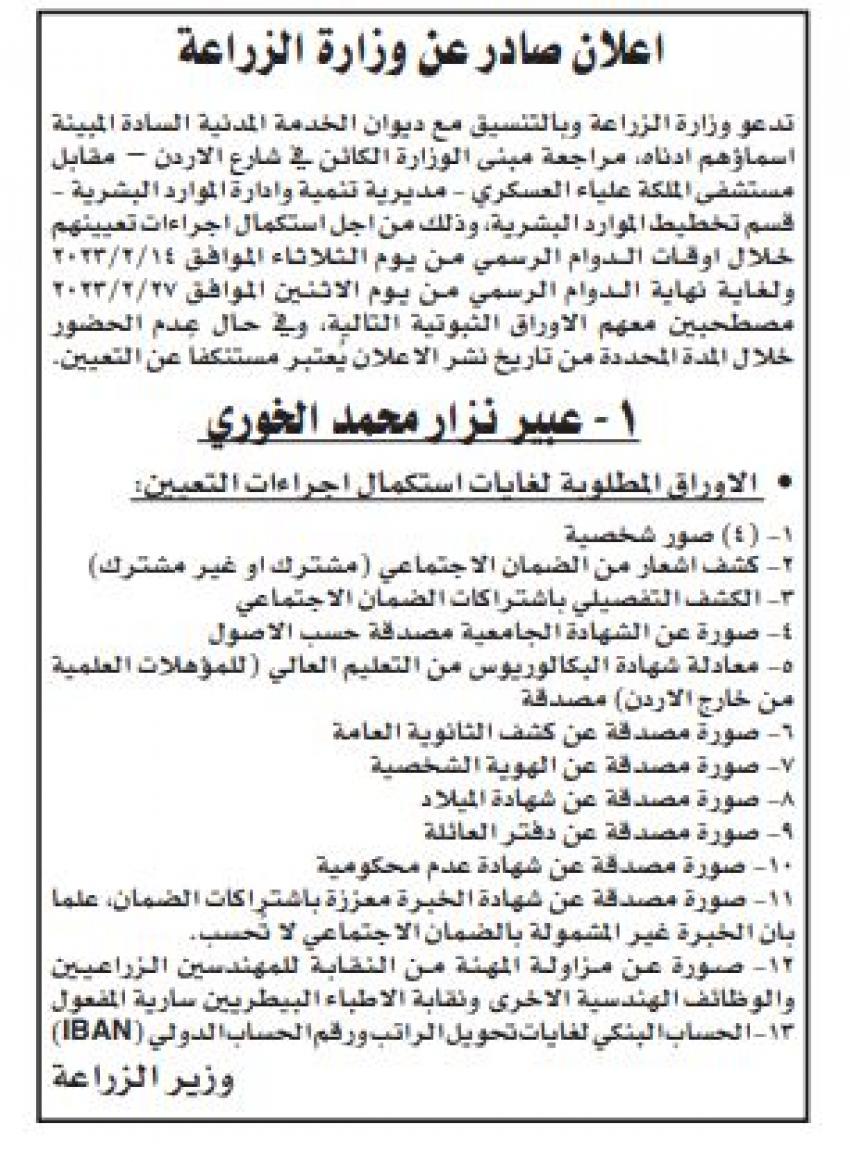 مدعوون للتعيين وشواغر في مؤسسات حكومية (أسماء)