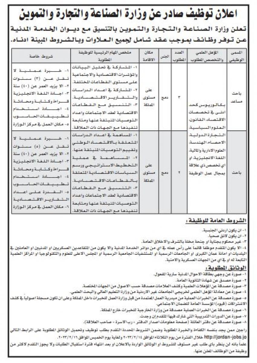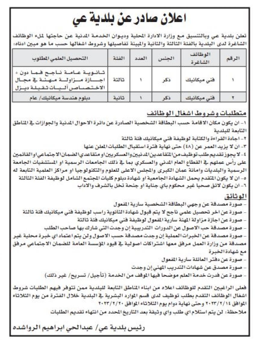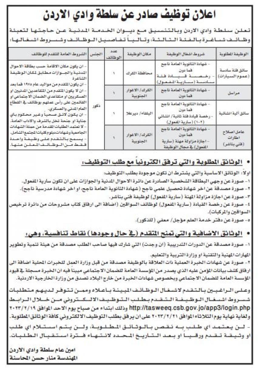 أعلنت عدد من الوزارات والمؤسسات الحكومية، اليوم الثلاثاء، عن عدد من الوظائف الشاغرة لديها، بالتنسيق مع ديوان الخدمة المدنية.