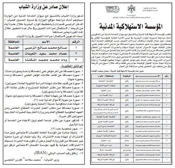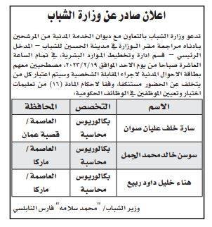دعت عدد من المؤسسات الحكومية اليوم الأربعاء، بالتنسيق مع ديوان الخدمة المدنية، عدداً من المرشحين مراجعتها لاستكمال إجراءات التعيين.