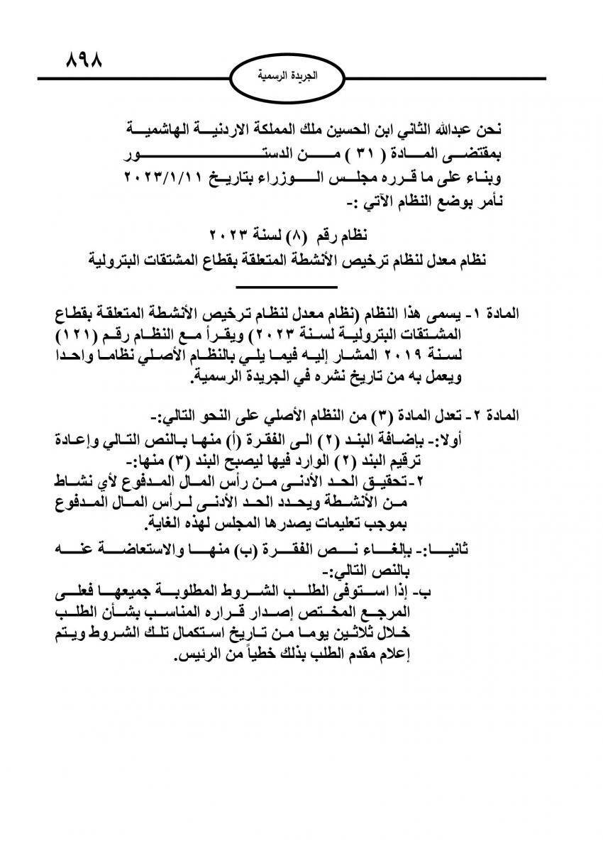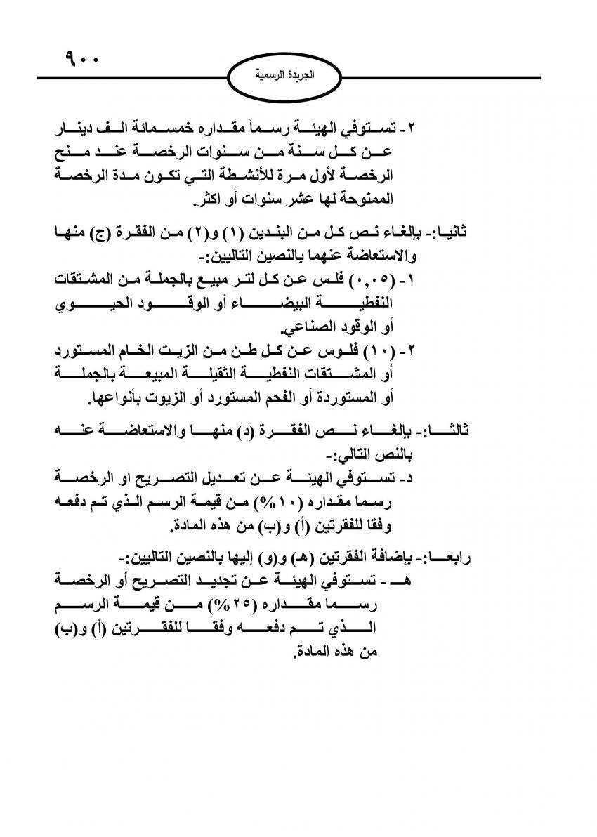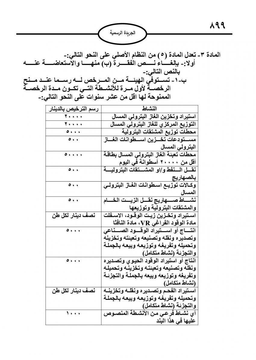 صدر في عدد الجريدة الرسمية الخميس، نظام معدل لنظام ترخيص الأنشطة المتعلقة بقطاع المشتقات البترولية.