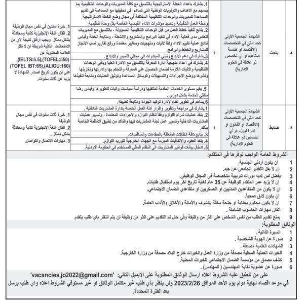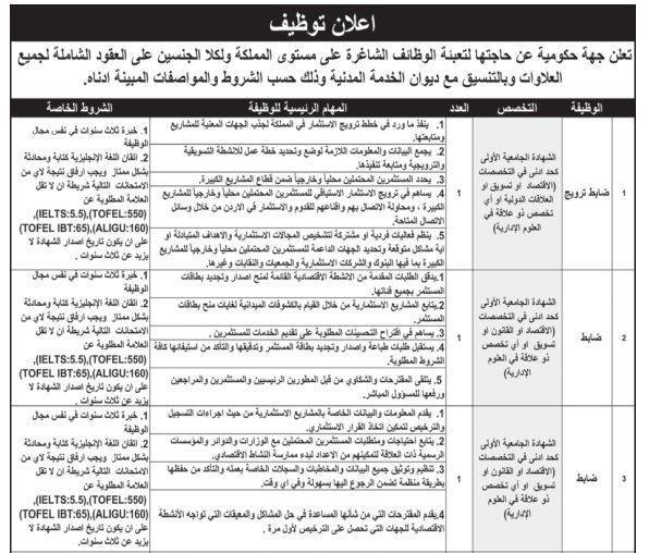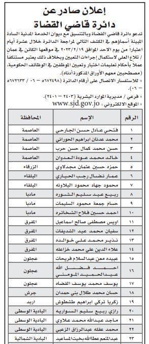 أعلنت عدد من الوزارات المؤسسات الحكومية اليوم الأحد، بالتنسيق مع ديوان الخدمة المدنية، عن حاجتها لتعبيئة وظائف شاغرة، واجراء مقابلات شخصية واستكمال اجراءات التعيين.