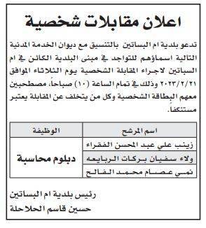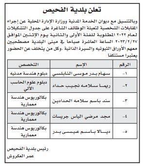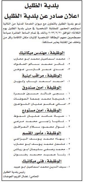 وظائف شاغرة ومدعوون لإجراء المقابلات الشخصية (أسماء)