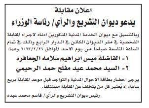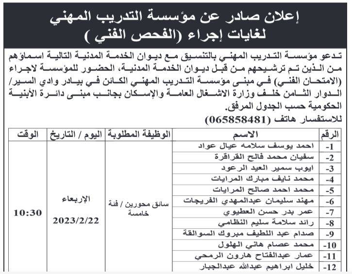 دعت عدد من المؤسسات الرسمية والبلديات بالتنسيق مع ديوان الخدمة المدنية، عدد من المرشحين لإجراء المقابلات الشخصية، وإجراء الفحص الفني.
