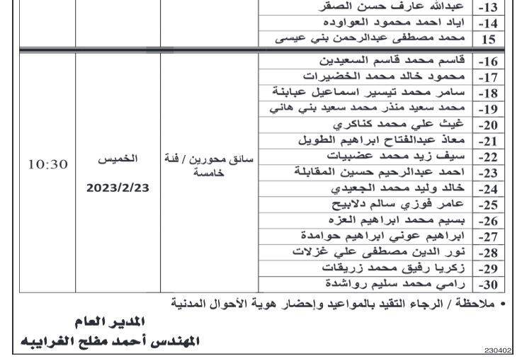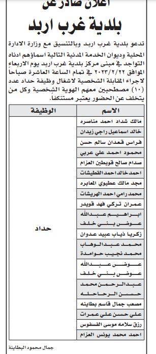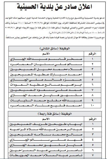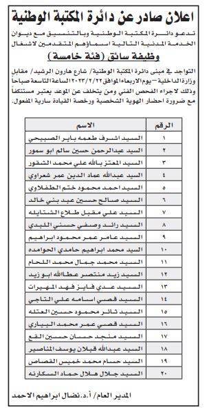مدعوون لمقابلات شخصية (أسماء)