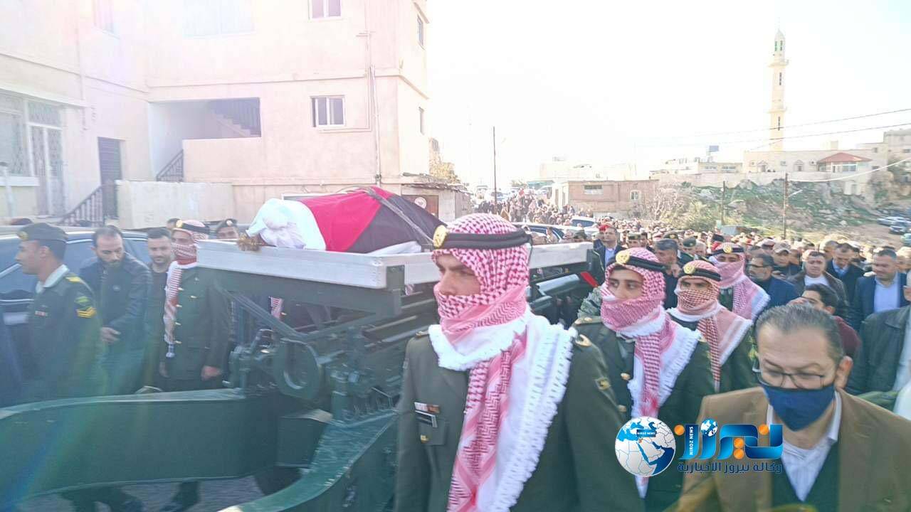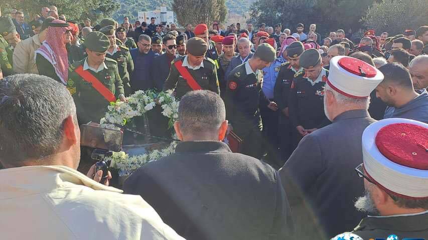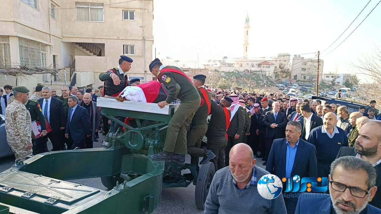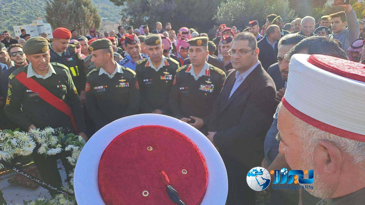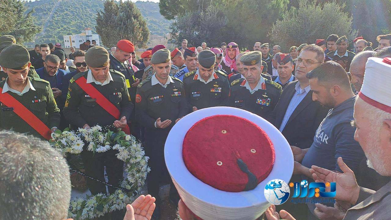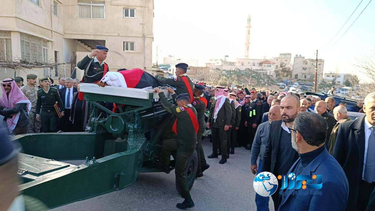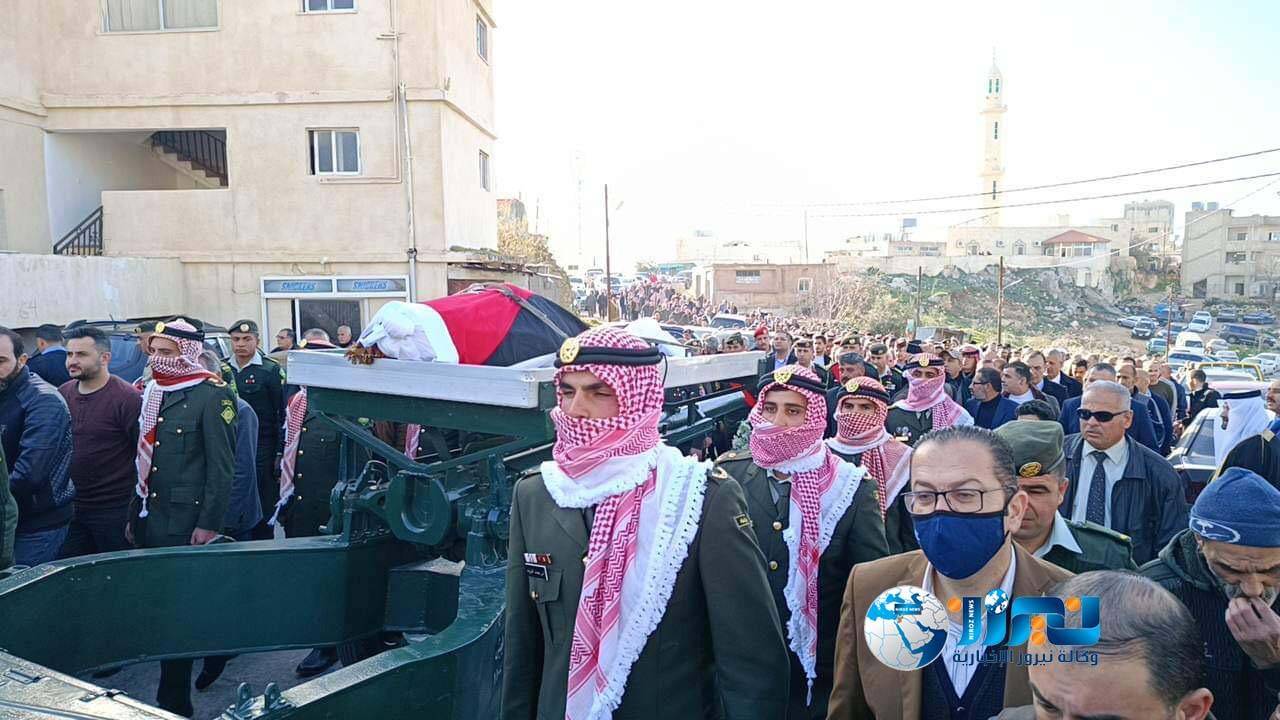 وجرى للفقيد مراسم عسكرية نقل خلالها إلى مثواه الأخير مكللاً بالعلم الأردني على عربة مدفع ومحمولاً على أكتاف رفاق السلاح.