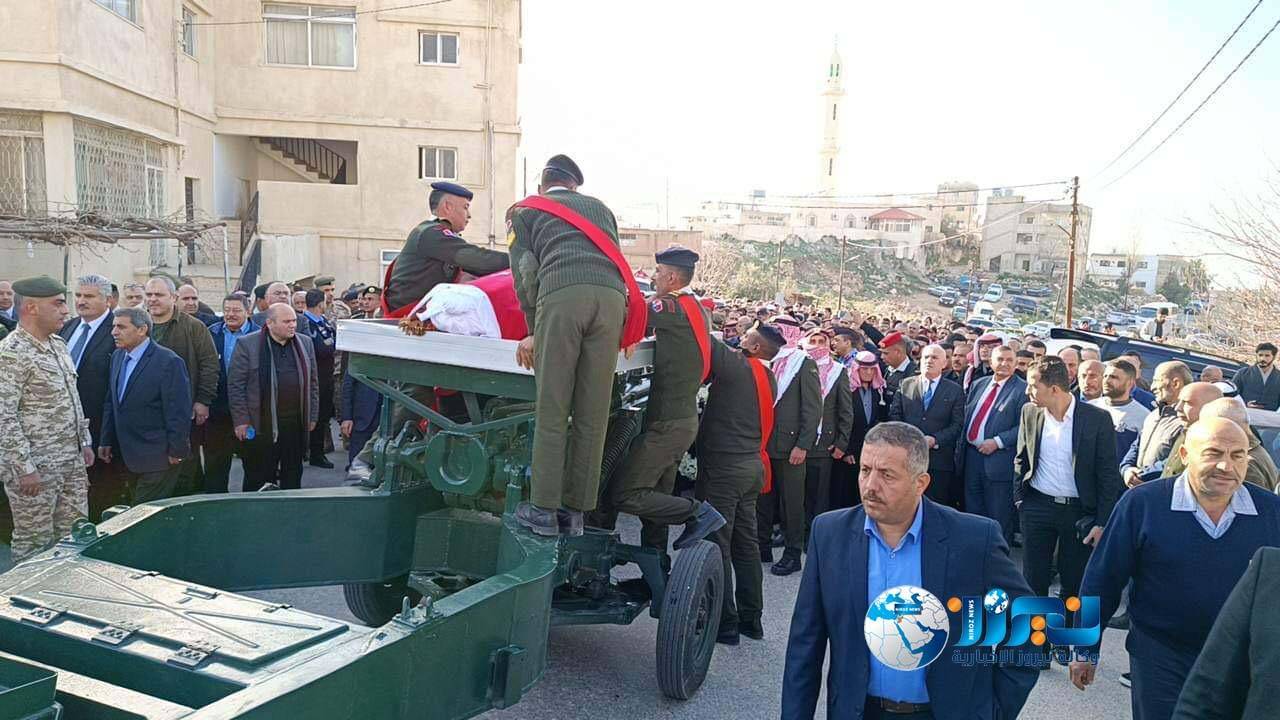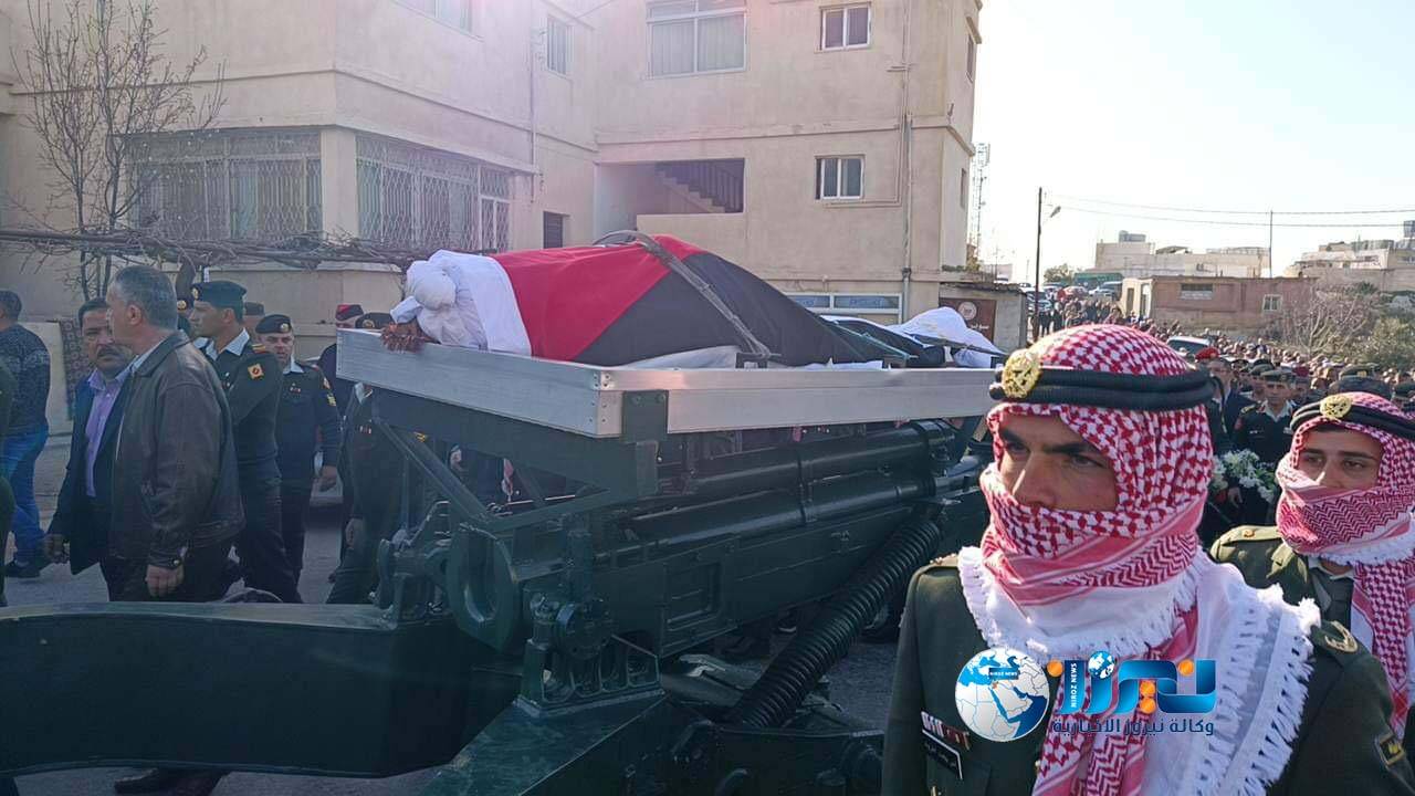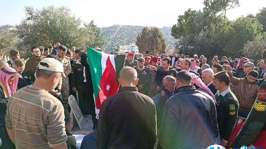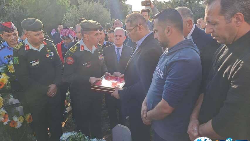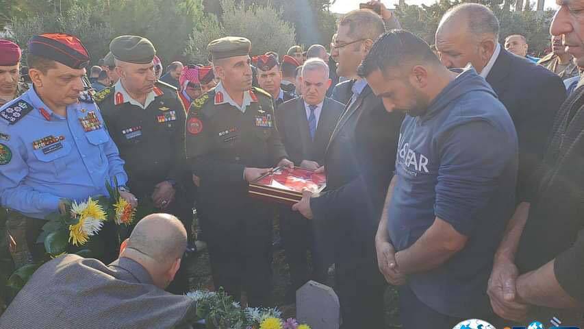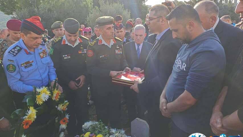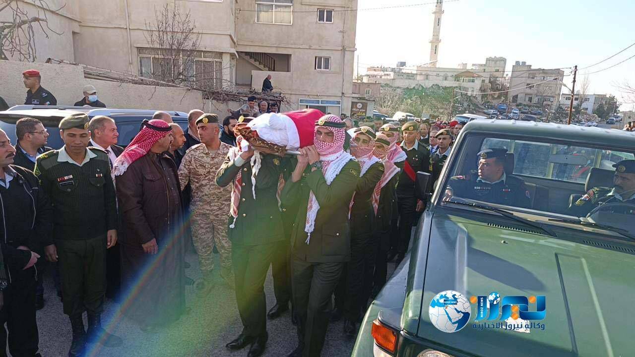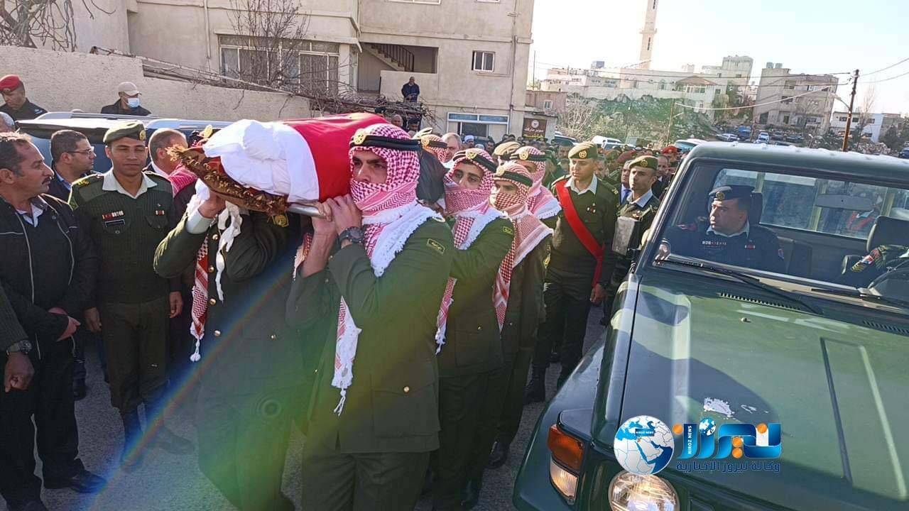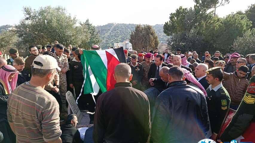 وجرى للفقيد مراسم عسكرية نقل خلالها إلى مثواه الأخير مكللاً بالعلم الأردني على عربة مدفع ومحمولاً على أكتاف رفاق السلاح.