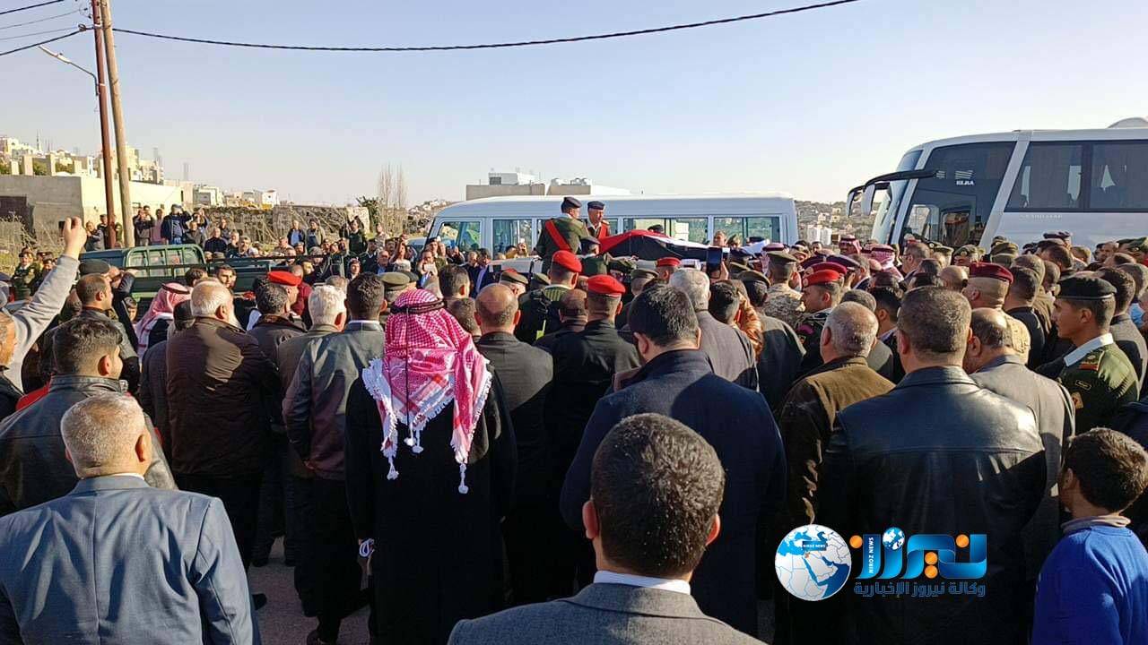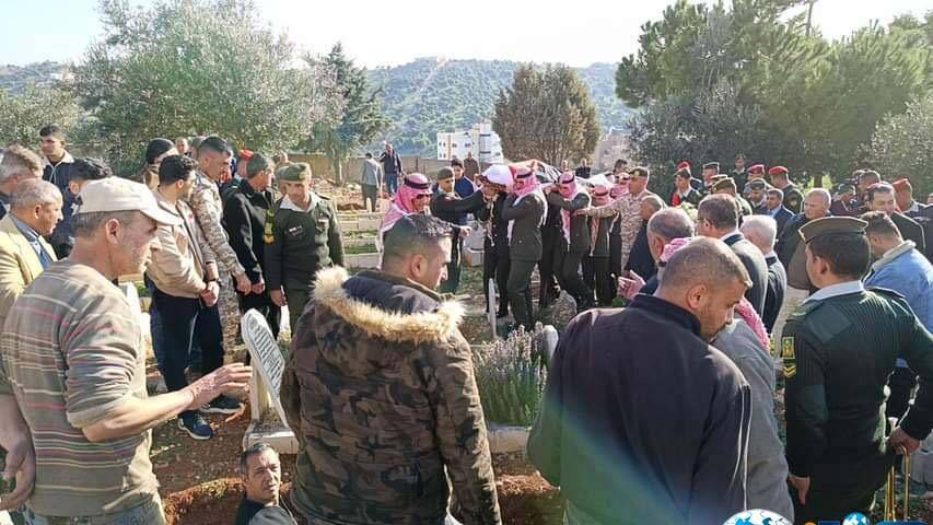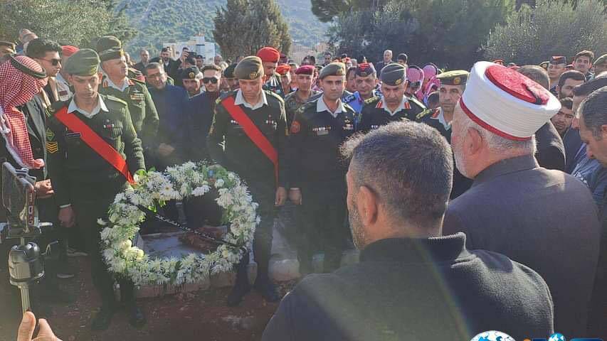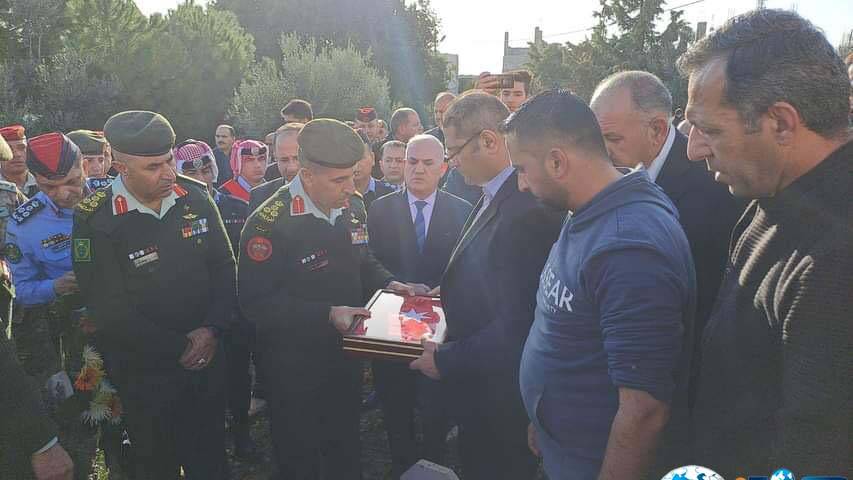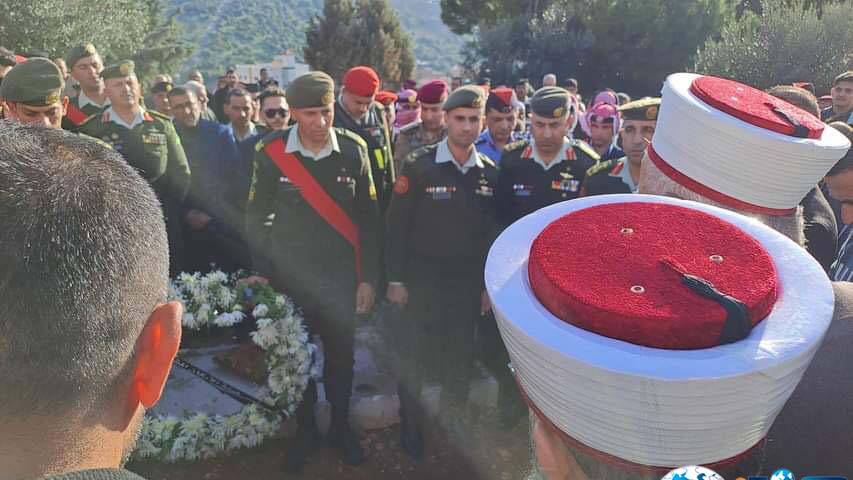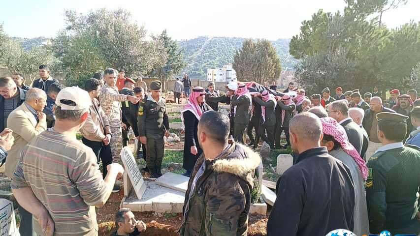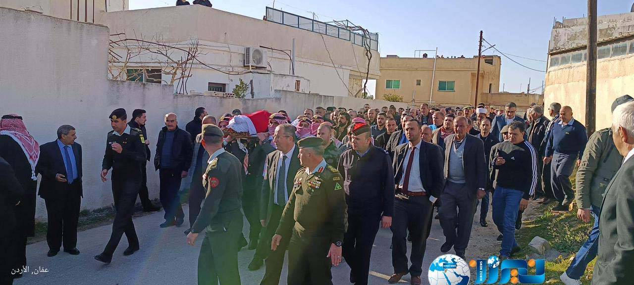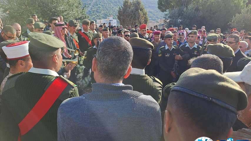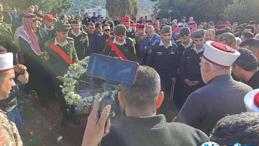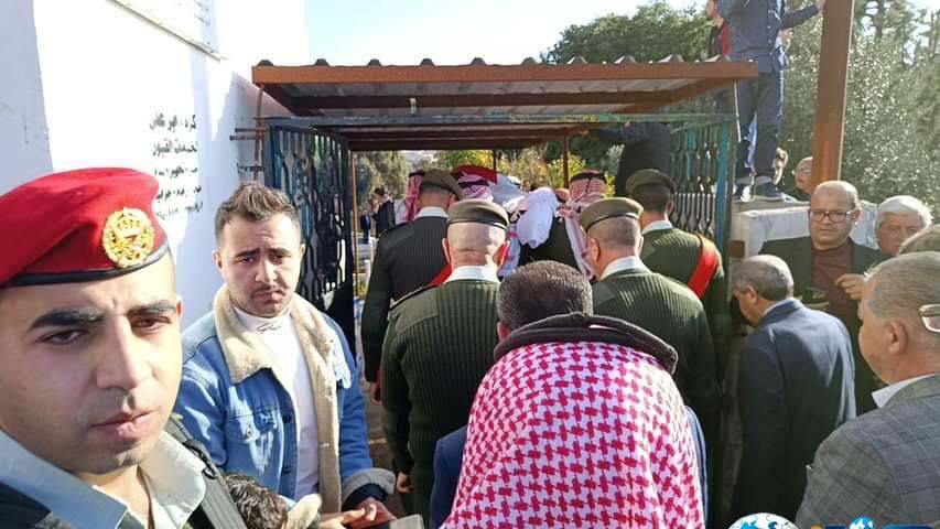 وجرى للفقيد مراسم عسكرية نقل خلالها إلى مثواه الأخير مكللاً بالعلم الأردني على عربة مدفع ومحمولاً على أكتاف رفاق السلاح.