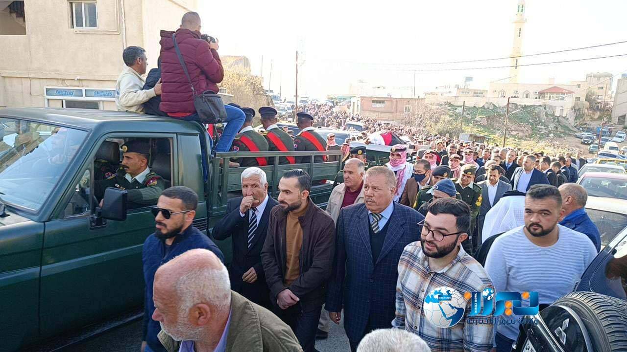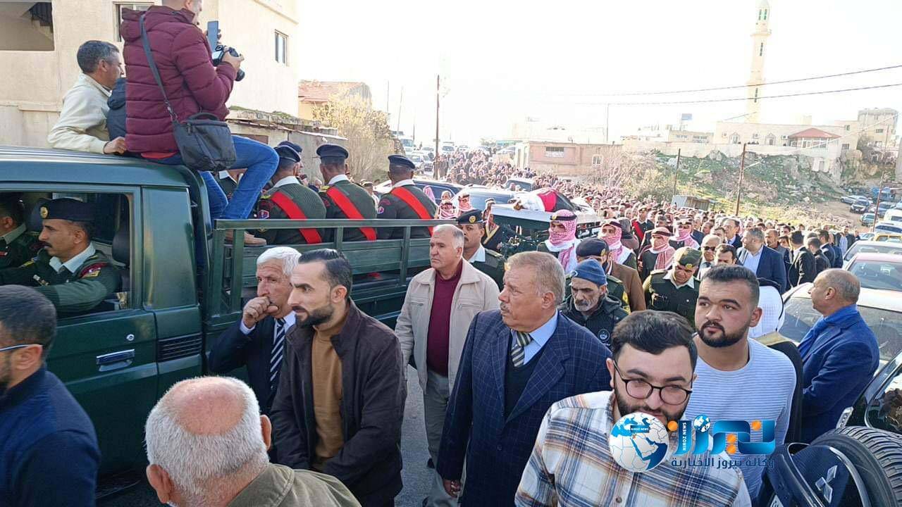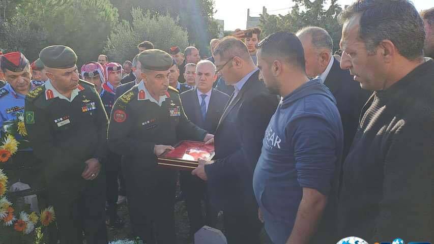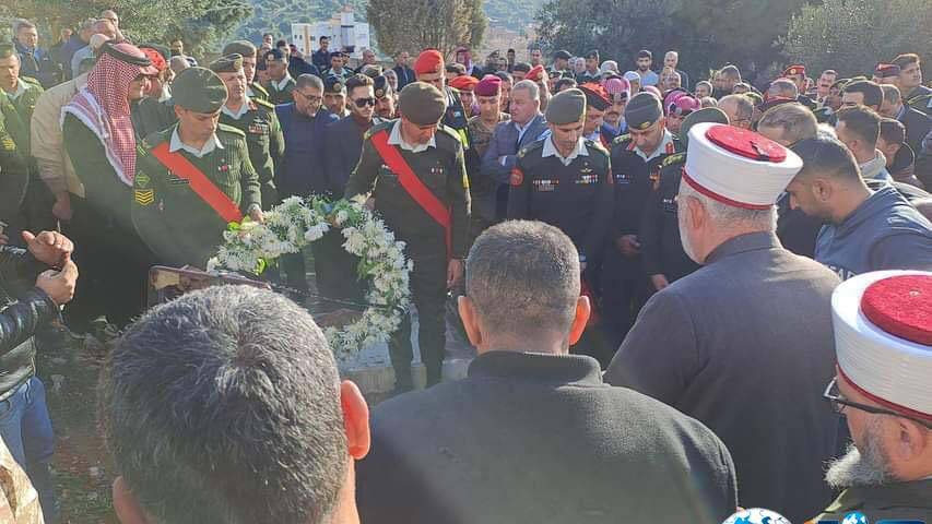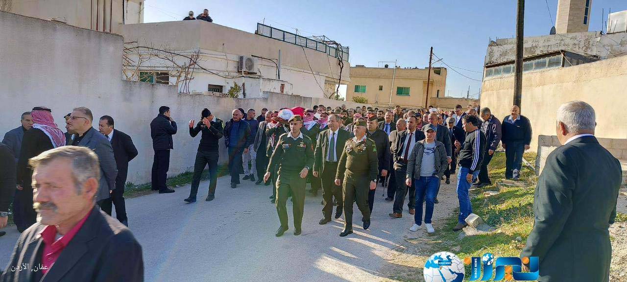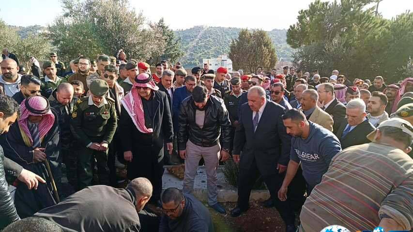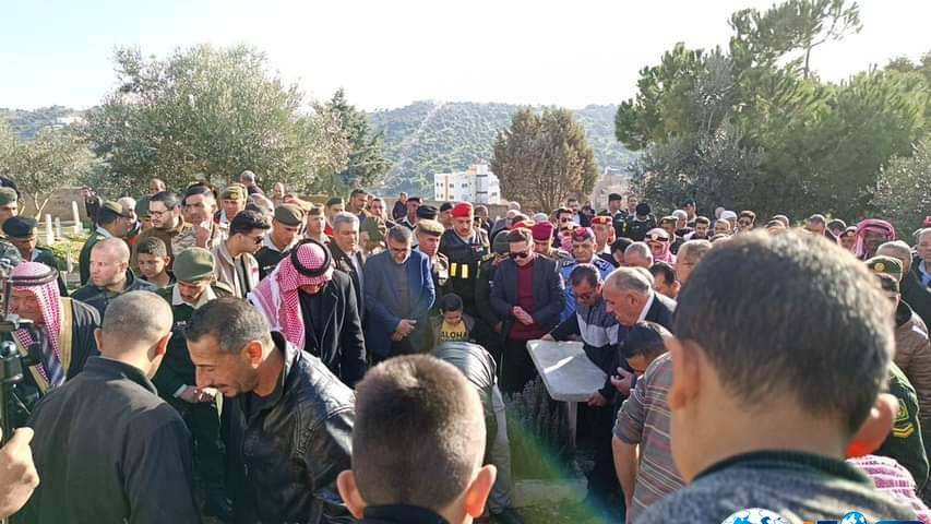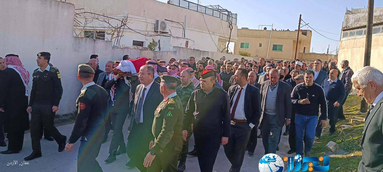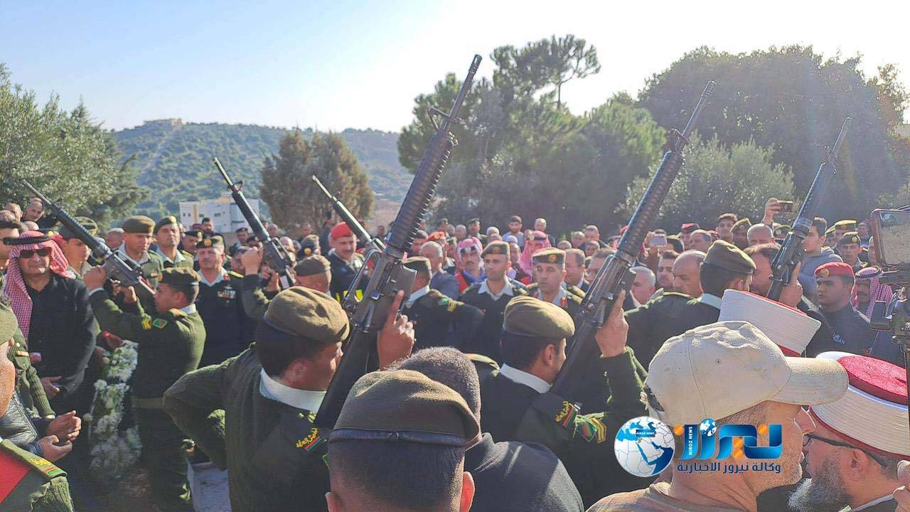 وجرى للفقيد مراسم عسكرية نقل خلالها إلى مثواه الأخير مكللاً بالعلم الأردني على عربة مدفع ومحمولاً على أكتاف رفاق السلاح.