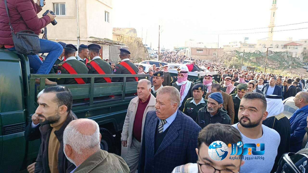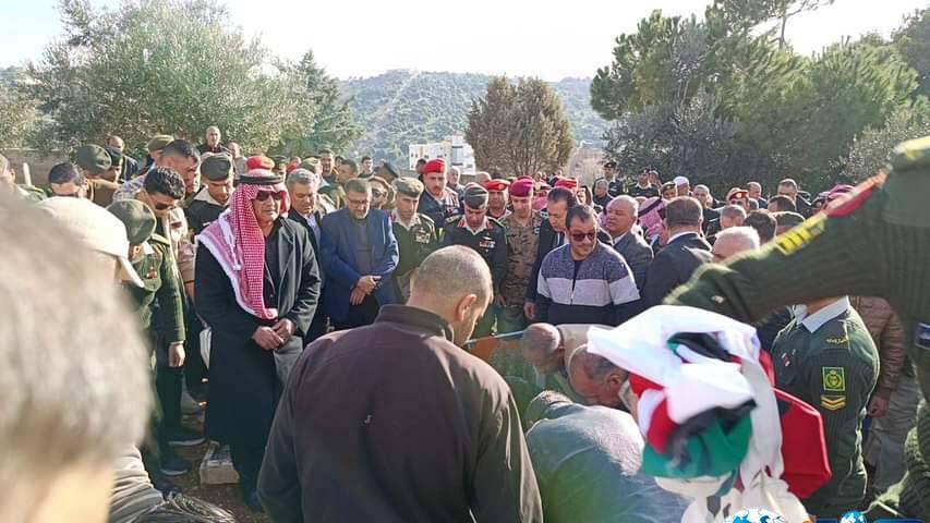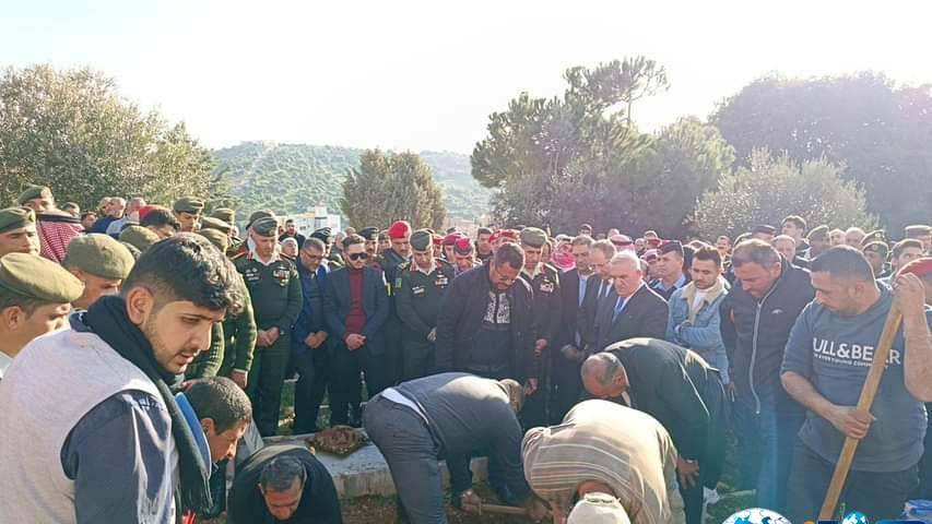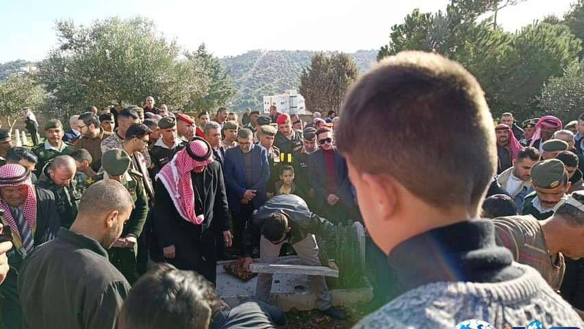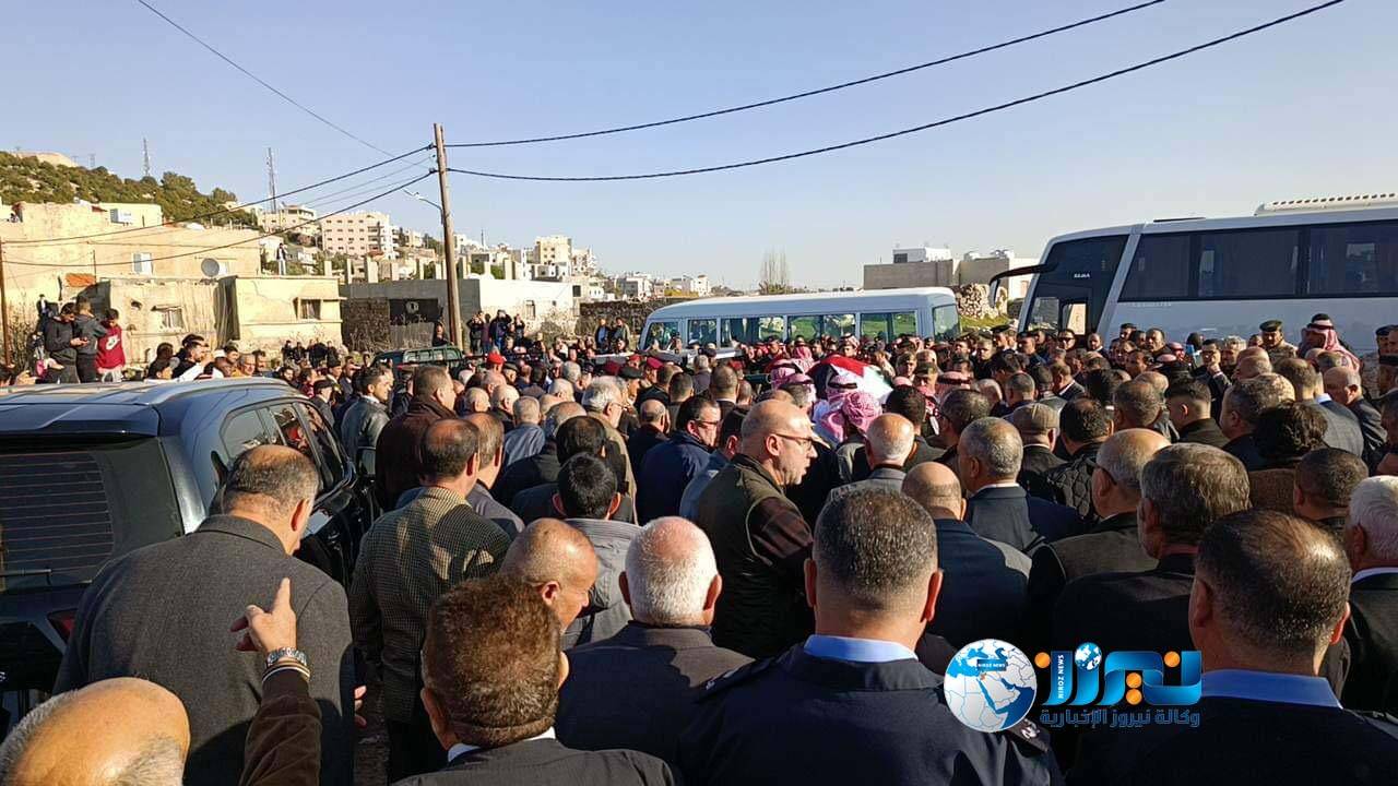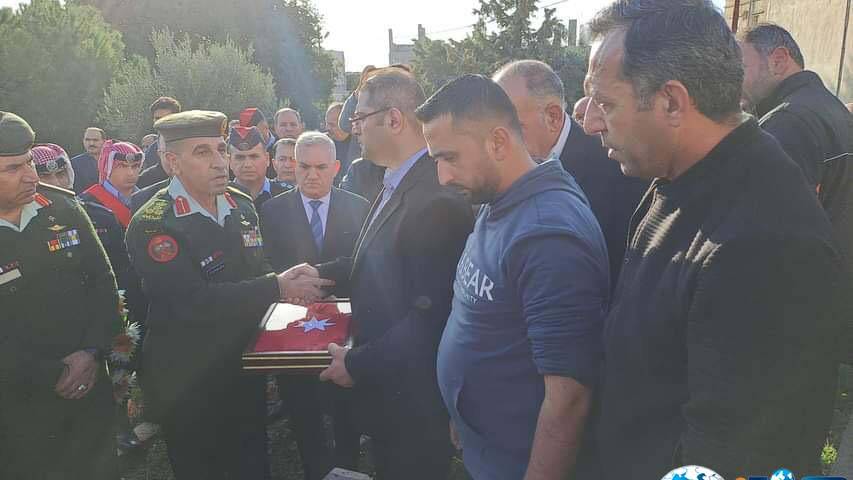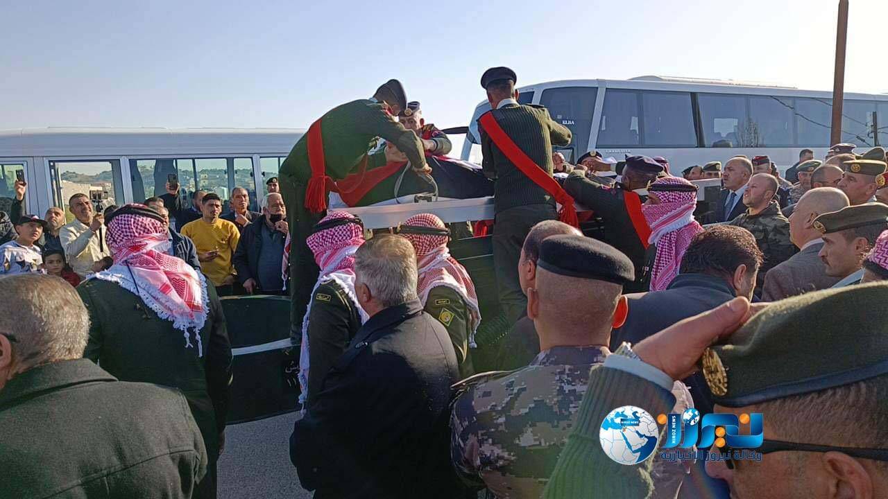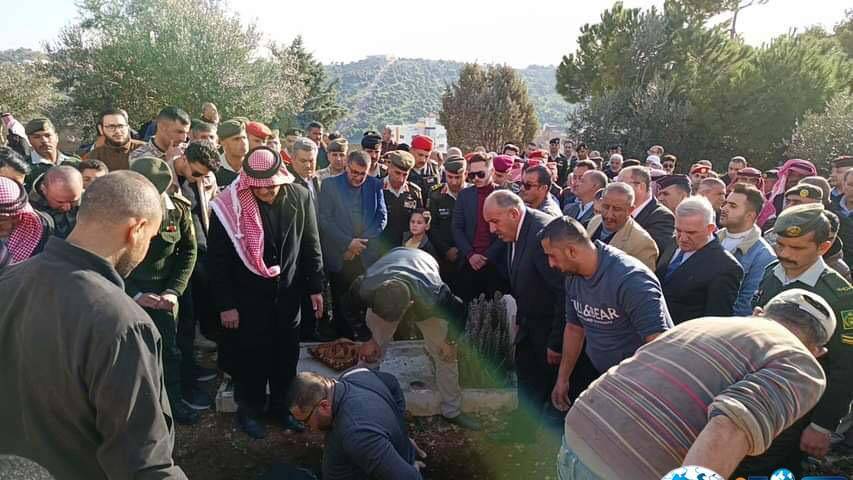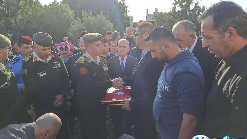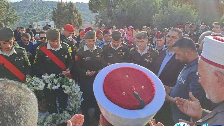 وجرى للفقيد مراسم عسكرية نقل خلالها إلى مثواه الأخير مكللاً بالعلم الأردني على عربة مدفع ومحمولاً على أكتاف رفاق السلاح.