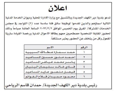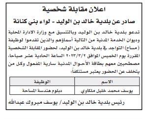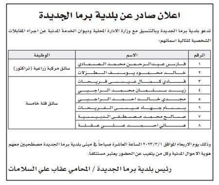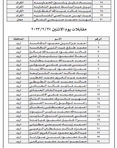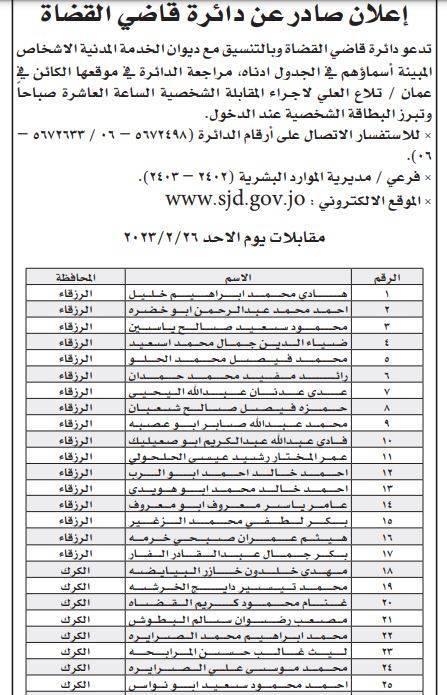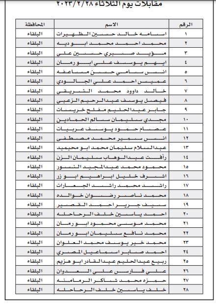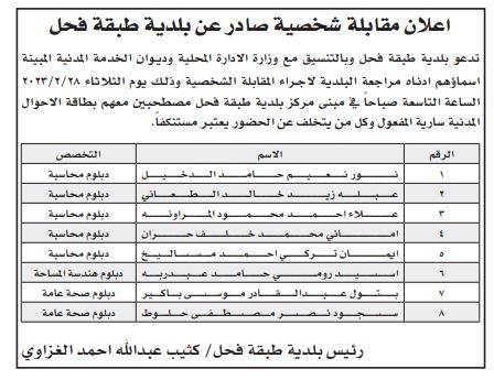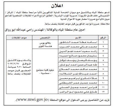 دعت عدد من المؤسسات الرسمية والبلديات بالتنسيق مع ديوان الخدمة المدنية اليوم الخميس، عدد من المرشحين لإجراء المقابلات الشخصية.