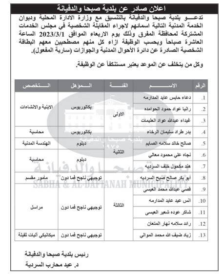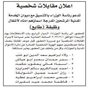 وظائف شاغرة ومدعوون لإجراء المقابلات الشخصية (أسماء)