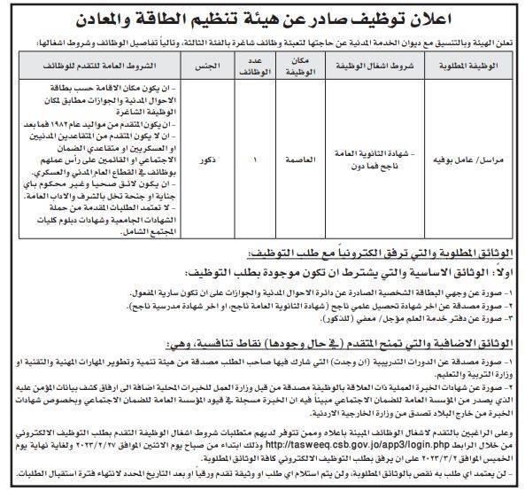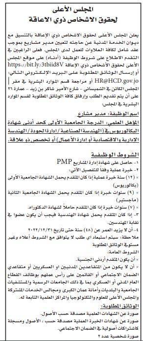 أعلنت عدد من المؤسسات الحكومية اليوم الأحد، بالتنسيق مع ديوان الخدمة المدنية، عن حاجتها لتعبيئة وظائف شاغرة، واجراء مقابلات شخصية واستكمال اجراءات التعيين.