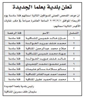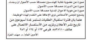 ودعت المؤسسات المدرجة أسماؤهم أدناه لاصطحاب الوثائق اللازمة .