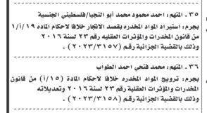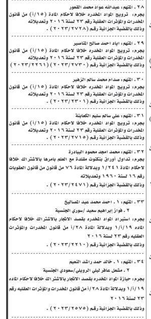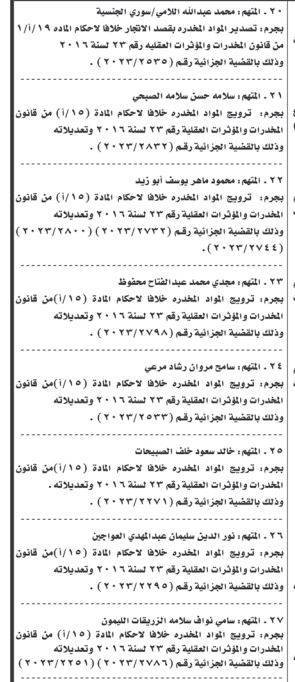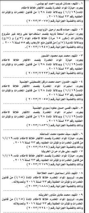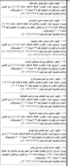 ونشرت المحكمة، أسماء المتهمين، عملا بأحكام المادة 243 /2 من قانون أصول المحاكمات الجزائية رقم 9 لسنة 1961.