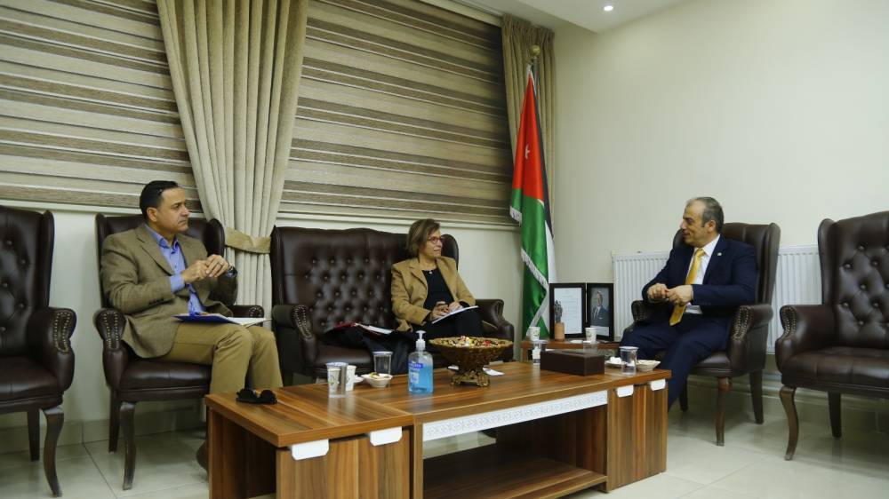 استقبل مدير عام المركز الوطني للبحوث الزراعية الدكتور نزار حداد السيدة رندا أبو الحُسن الممثل المقيم لبرنامج الأمم المتحدة الإنمائي (UNDP) في الأردن، والدكتور نضال العوران مدير برنامج البيئة والتغير المناخي لبحث سبُل تعزيز التعاون المستقبلي بين الطرفين في العديد من المجالات الزراعية.