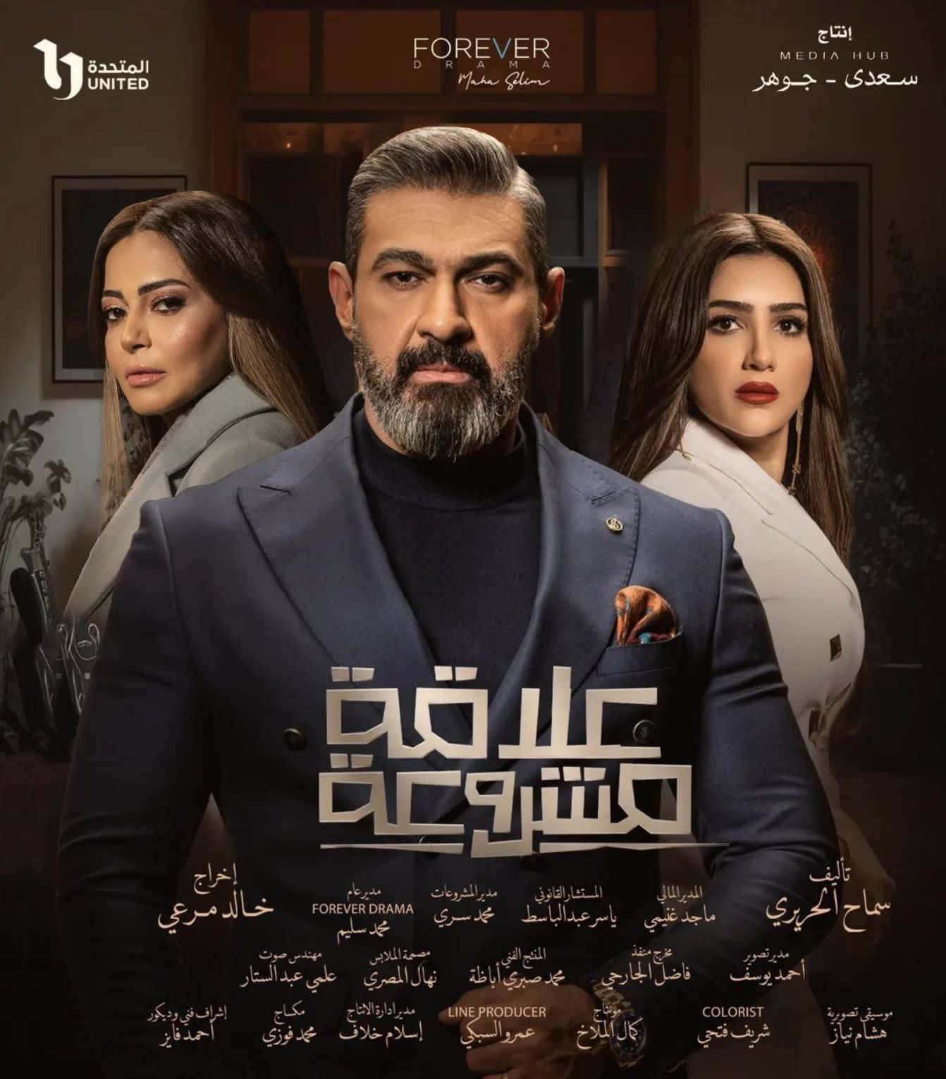 وجدير بالذكر بأن مسلسل «علاقة مشروعة» هو من إنتاج مشترك بين شركتى «Forever Drama - مها سليم» و «Media Hub  سعدى - جوهر» ومن بطولة كوكبه ونخبه من النجوم أبرزهم النجم: ياسر جلال، داليا مصطفى، مى عمر، ميمى جمال ، مراد مكرم، عفاف مصطفى، ياسمين رحمى وآخرين وهو من تأليف سماح الحريرى وإخراج خالد مرعى.