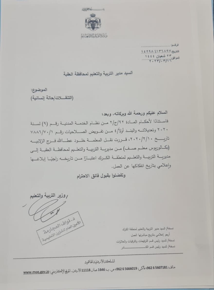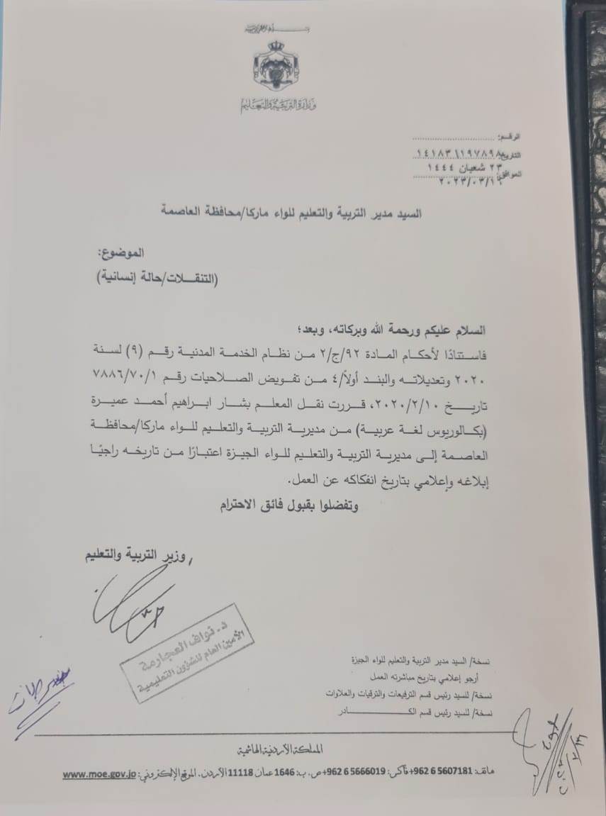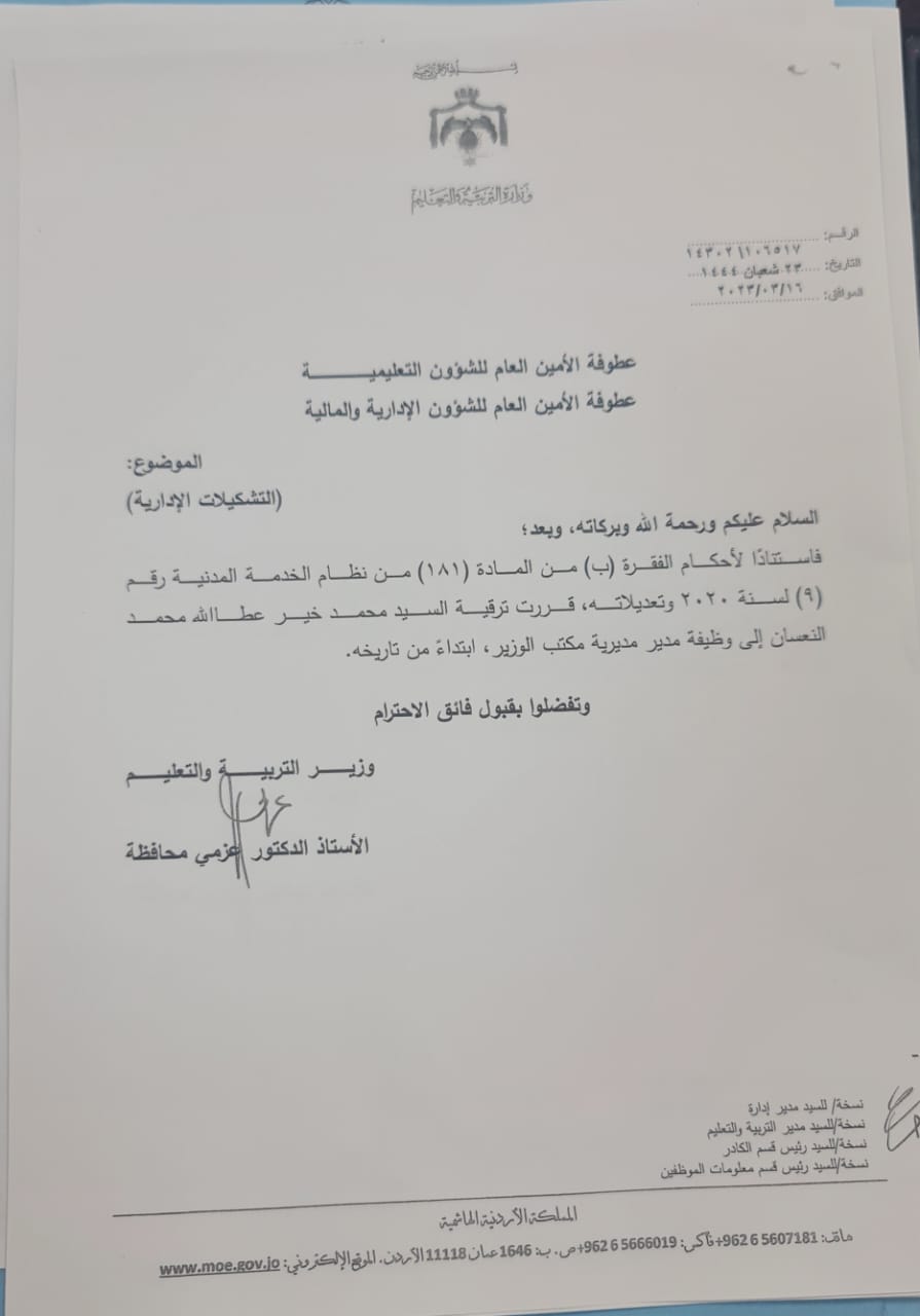 قرر وزير التربية والتعليم والتعليم العالي الدكتور عزمي محافظة إجراء تشكيلات وتنقلات شملت عددا من الموظفين .