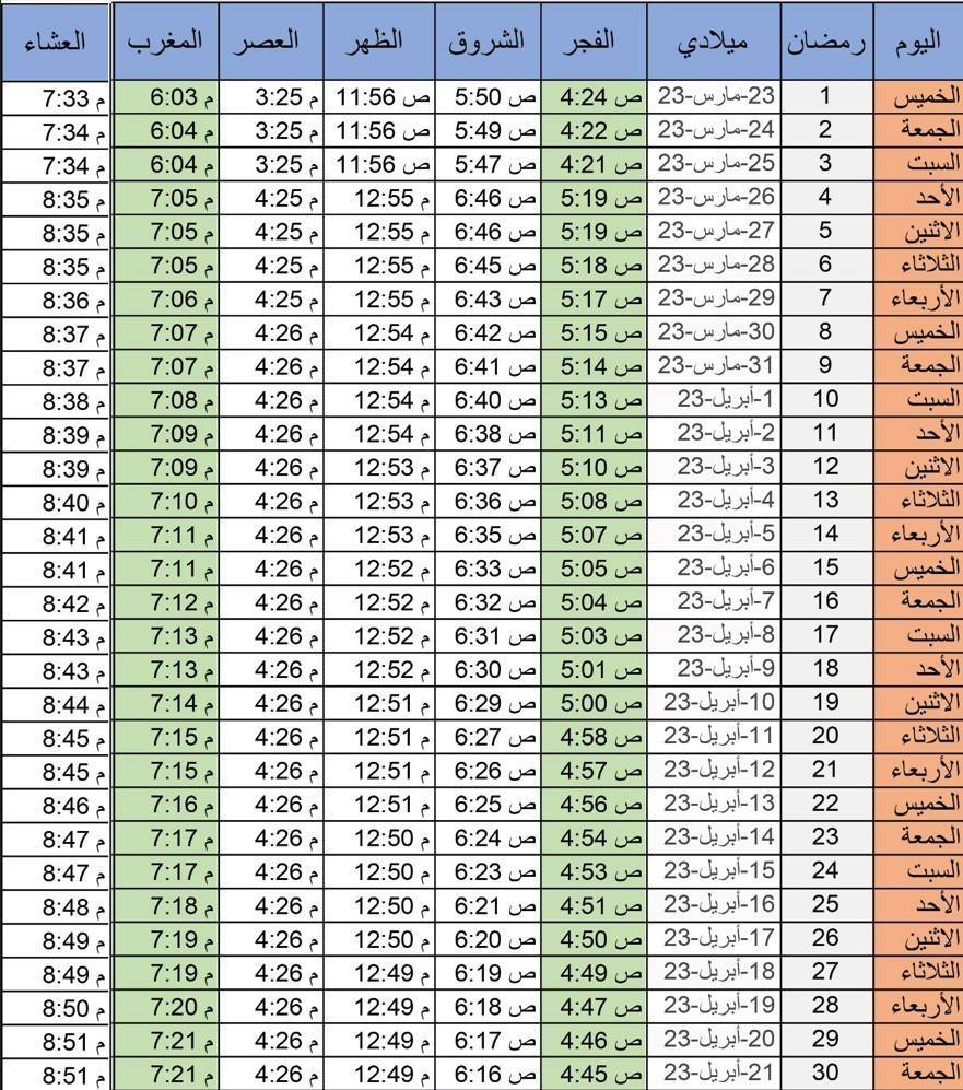 الإمساكية في شهر رمضان 2023، يتابعها المسلمون طوال الشهر لمعرفة مواقيت الآذان والسحور والإفطار، سنعرض لكم من موقع "الرسالة نت" إمساكية شهر رمضان لهذا العام.