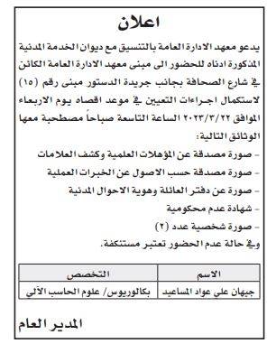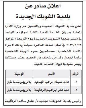 وظائف شاغرة ومدعوون لإجراء مقابلات شخصية (أسماء)